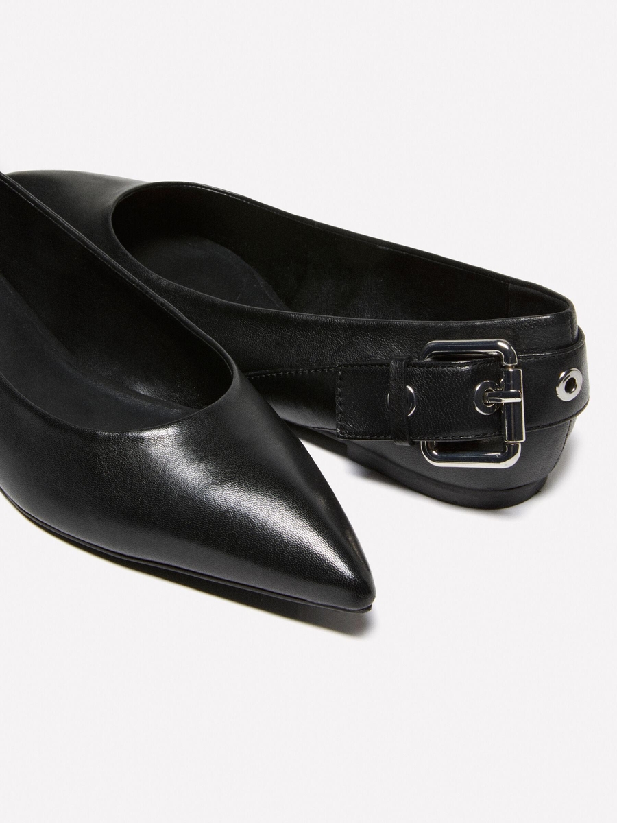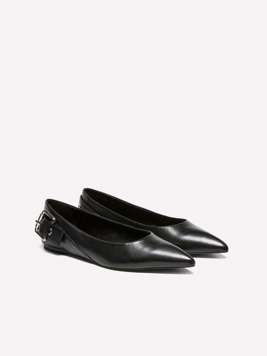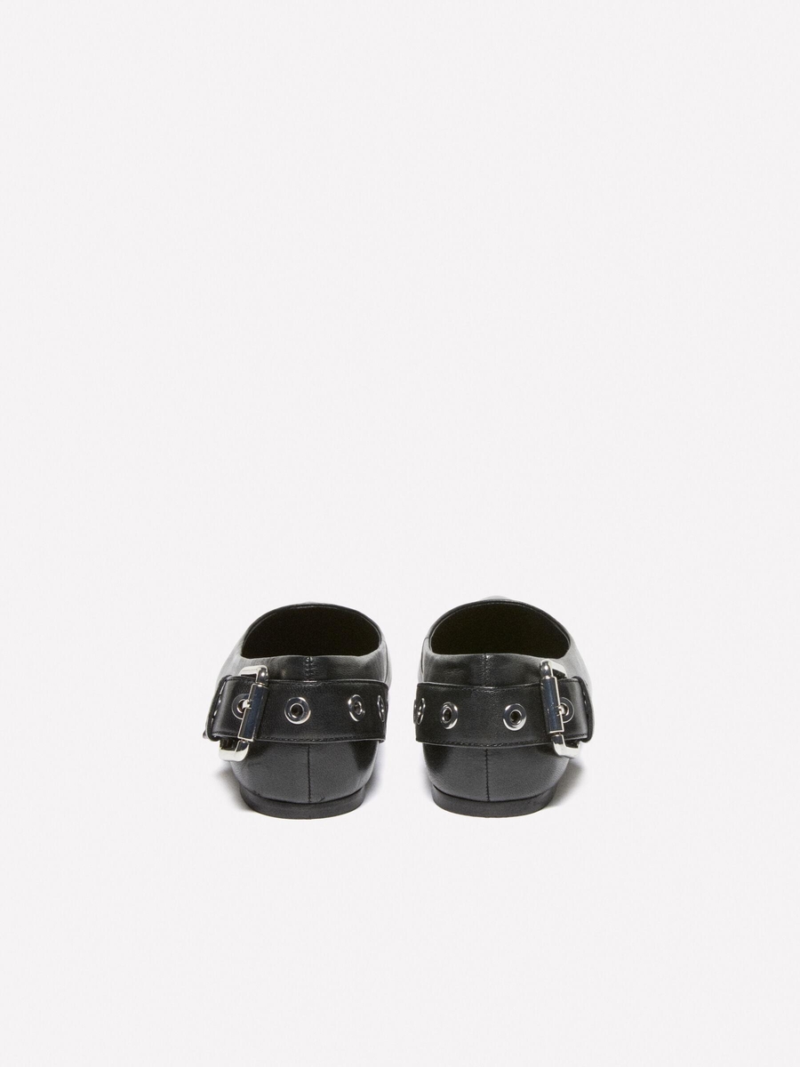 %100 Deri Kuşgözü Detaylı Babet Ayakkabı Kadın Siyah Babet - 325P8Y99WD02W