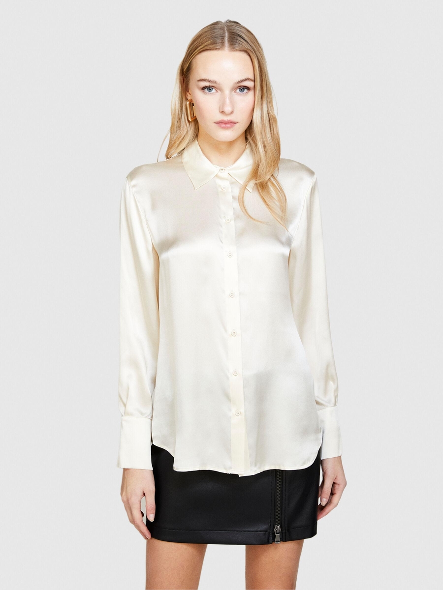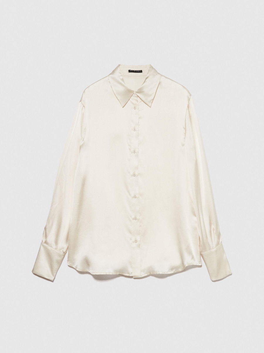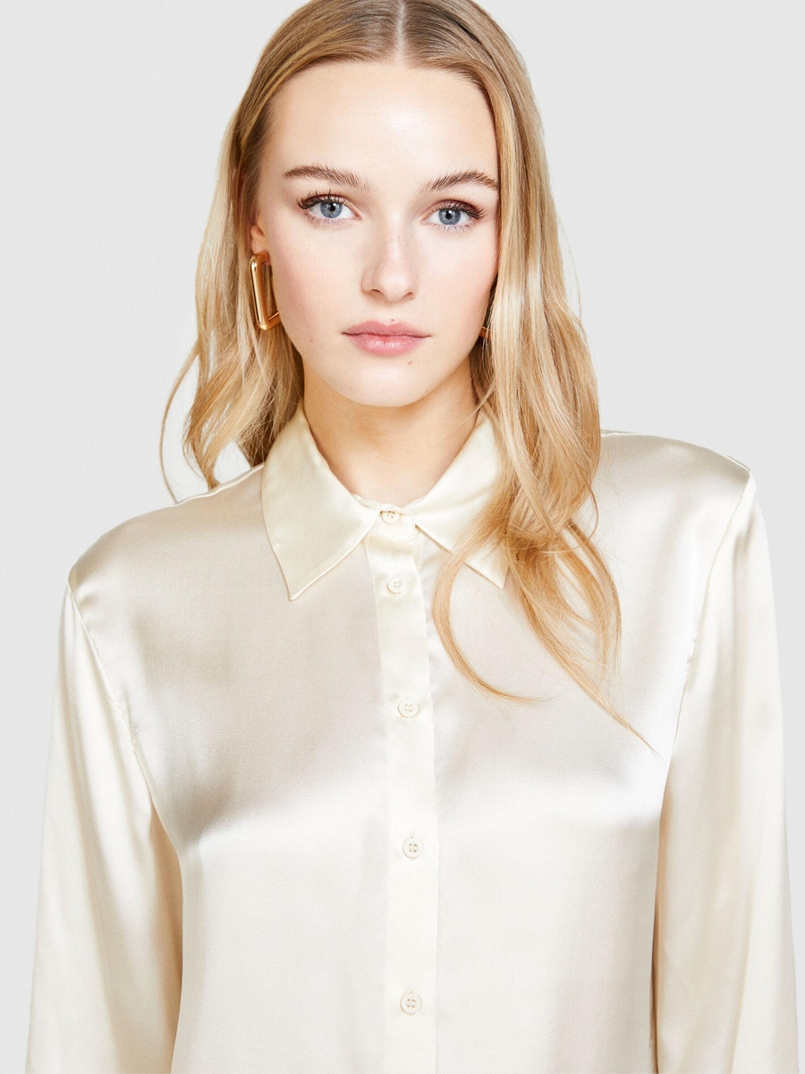 %100 İpek Arkası Uzun Regular Fit Gömlek Kadın Bej Gömlek - 324P5Q6WLQ05E