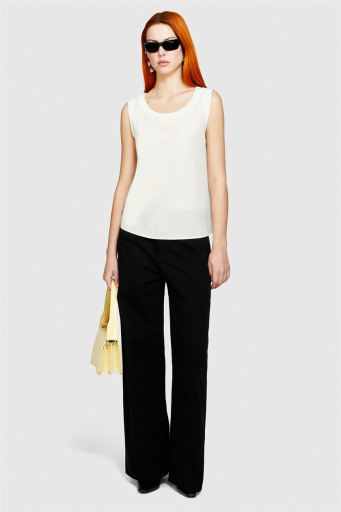 %100 İpek Bisiklet Yaka Kolsuz Bluz Kadın 0L8 Bluz - 324P50OYLH010