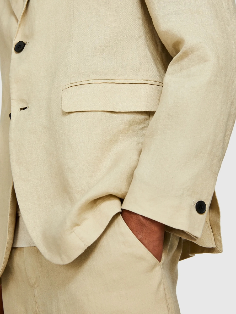 %100 Keten Astarsız Rahat Kalıp Ceket Erkek Bej Ceket - 325P2AGHSW01Q