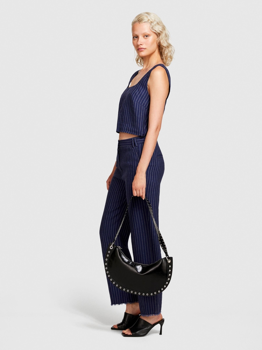 %100 Keten Çizgili Kare Yaka Askılı Bluz Kadın Haki Mix Bluz - 324P5NTHLH015