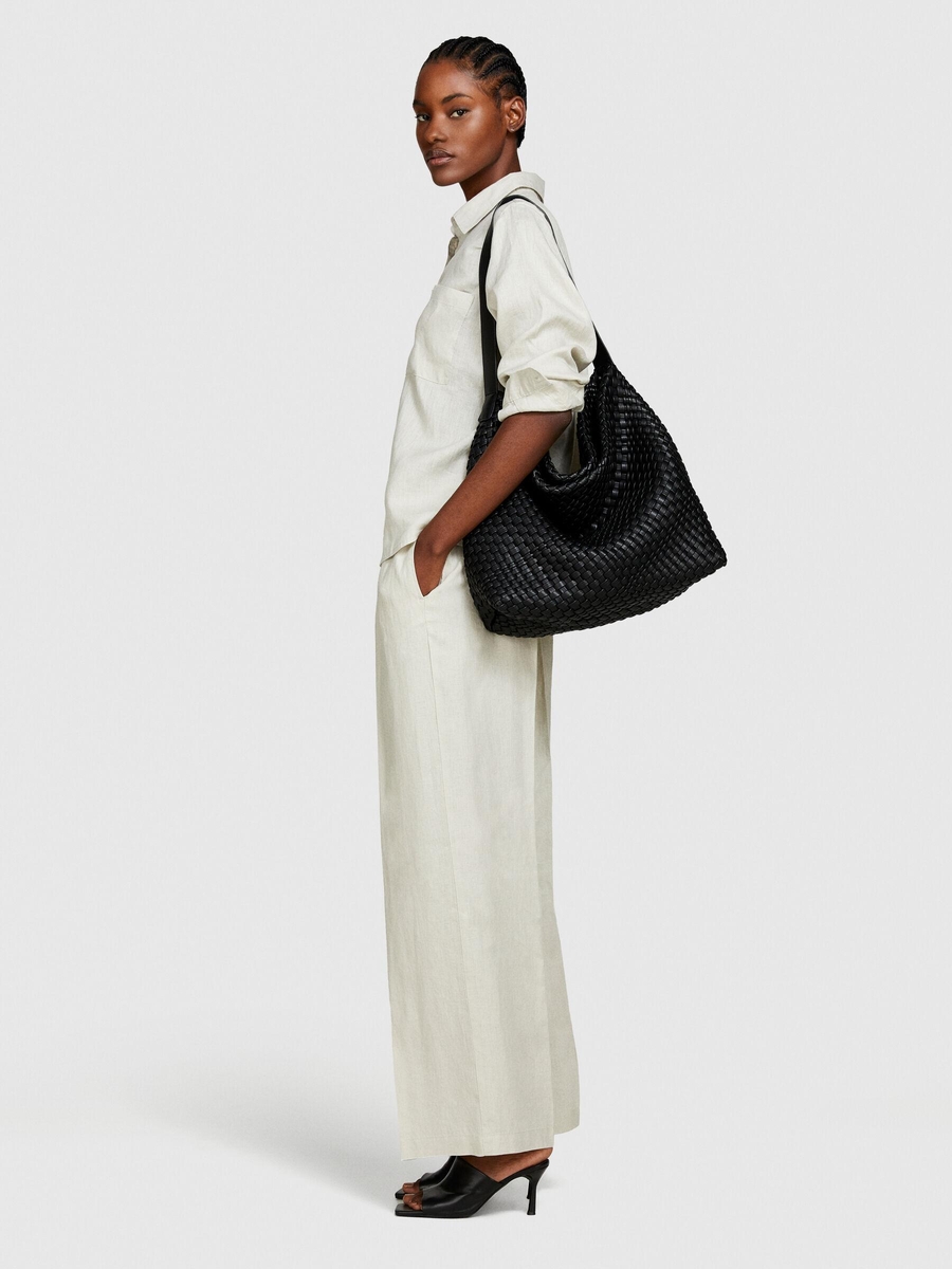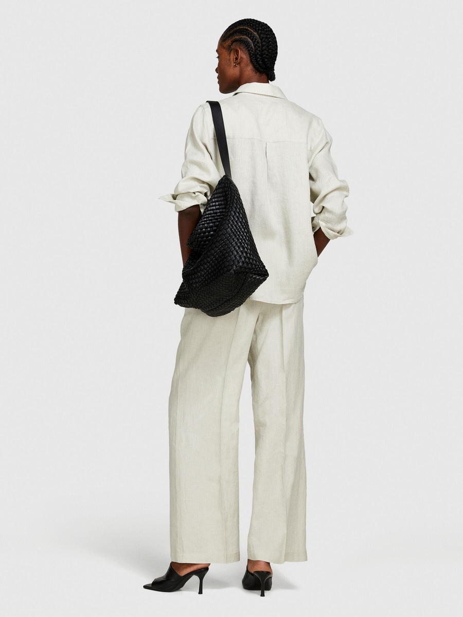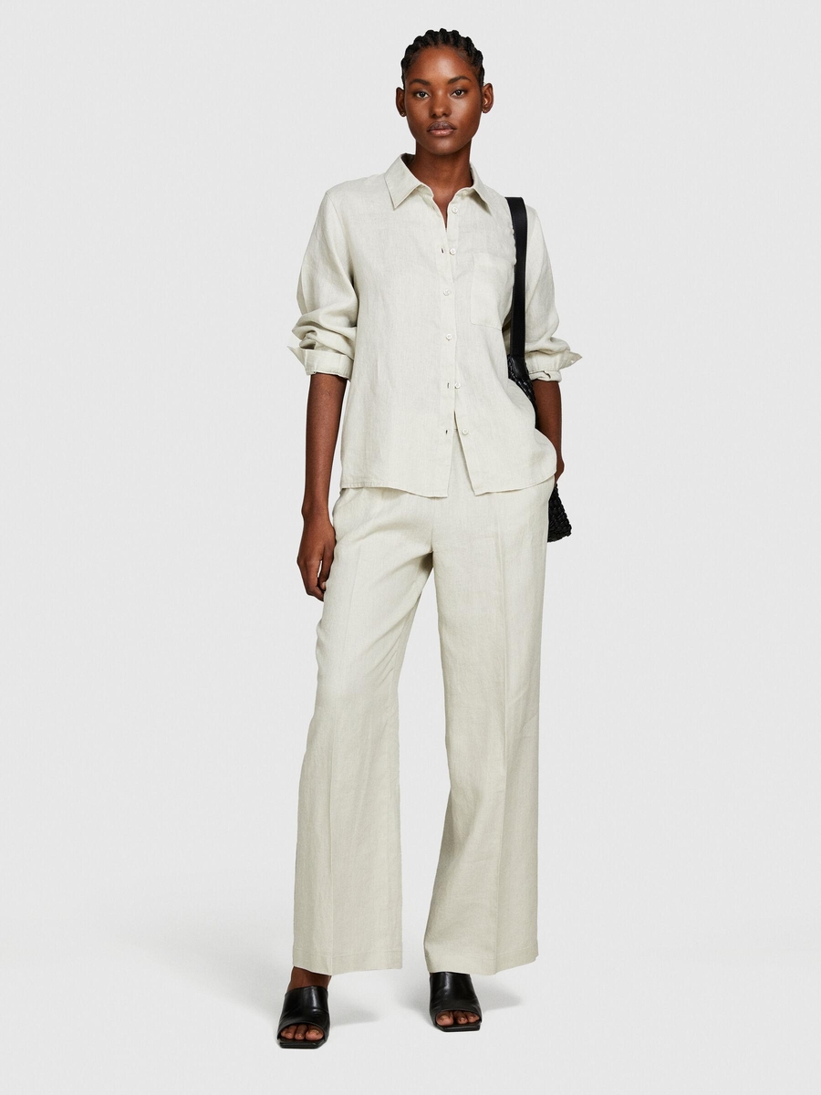 %100 Keten Düğmeli Göğüs Cepli Uzun Kollu Gömlek Kadın Bej Gömlek - 324P5BMLLQ06S