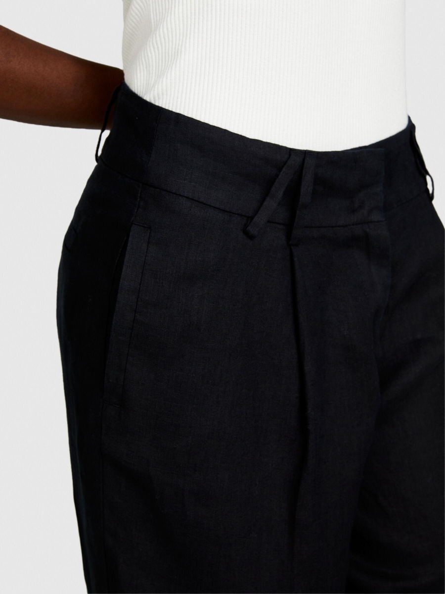 %100 Keten Gizli Düğmeli Yüksek Bel Pantolon Kadın Siyah Pantolon - 324P4AGHLF04Y