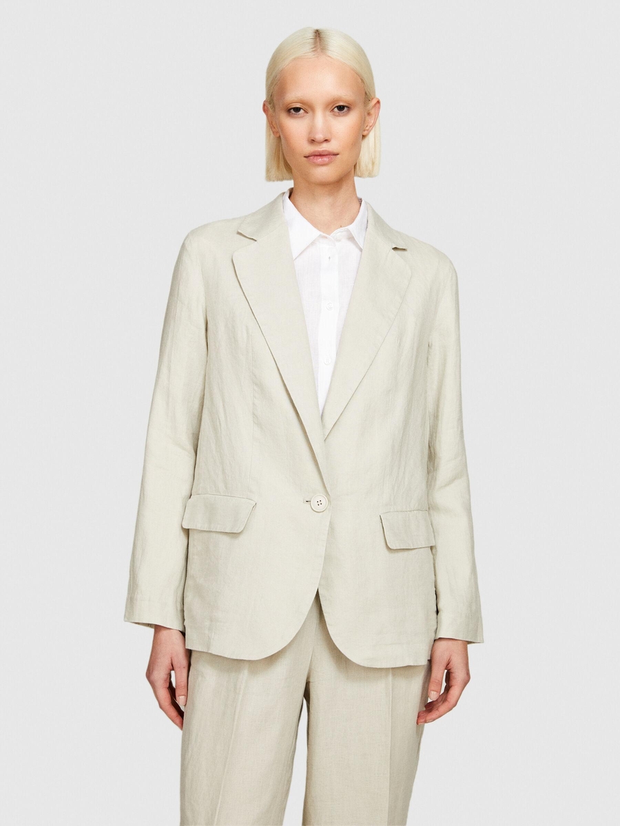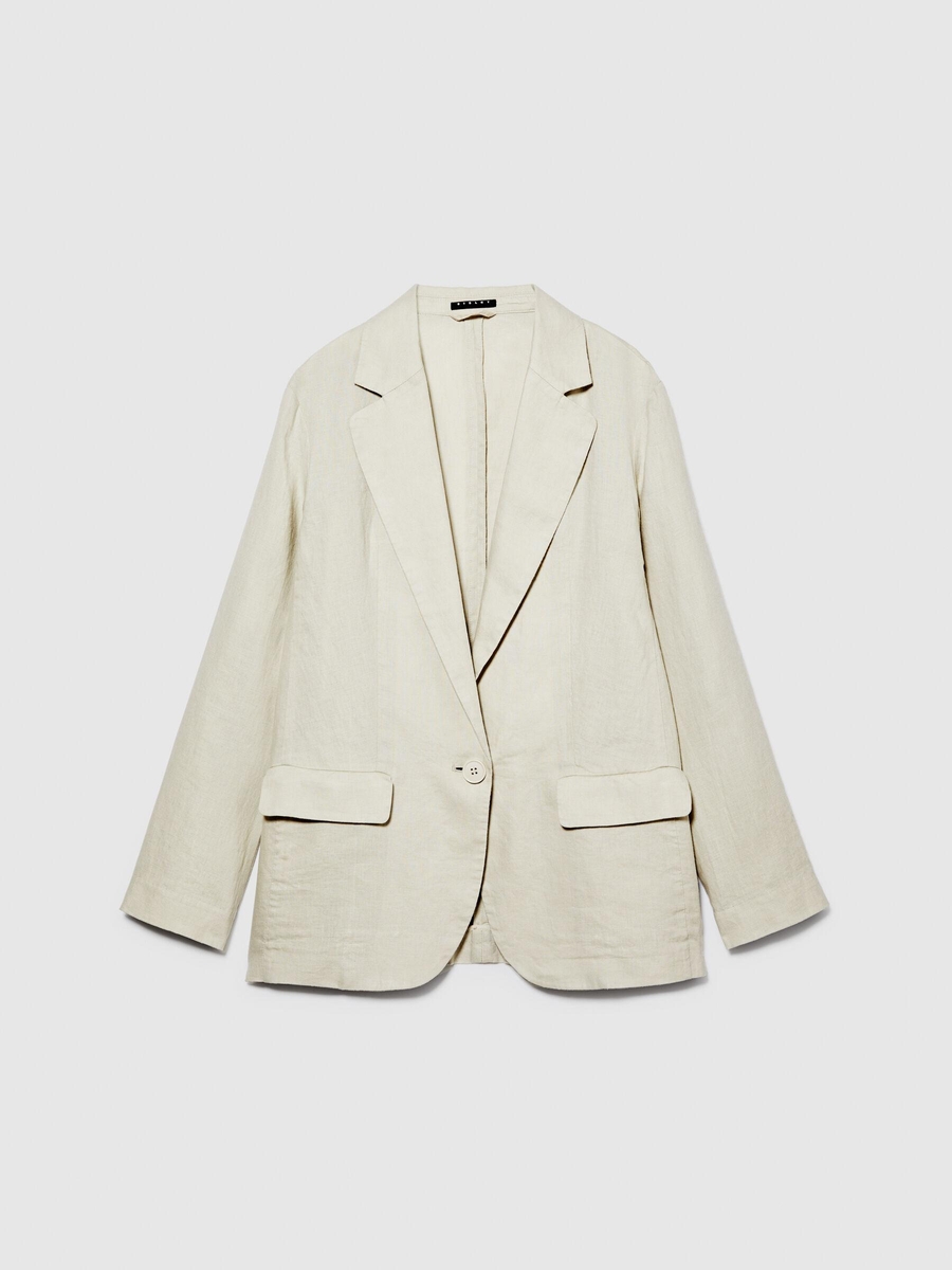 %100 Keten Kapaklı Cep Tasarımı Tek Düğmeli Blazer Ceket Kadın Gri Ceket - 324P2AGHLW019