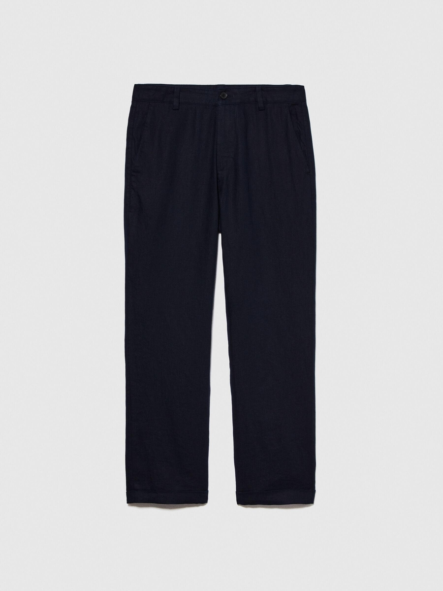 %100 Keten Kemer Delikli Kıvrık Paça Regular Fit Pantolon Erkek Lacivert Pantolon - 324P4AGHSF042