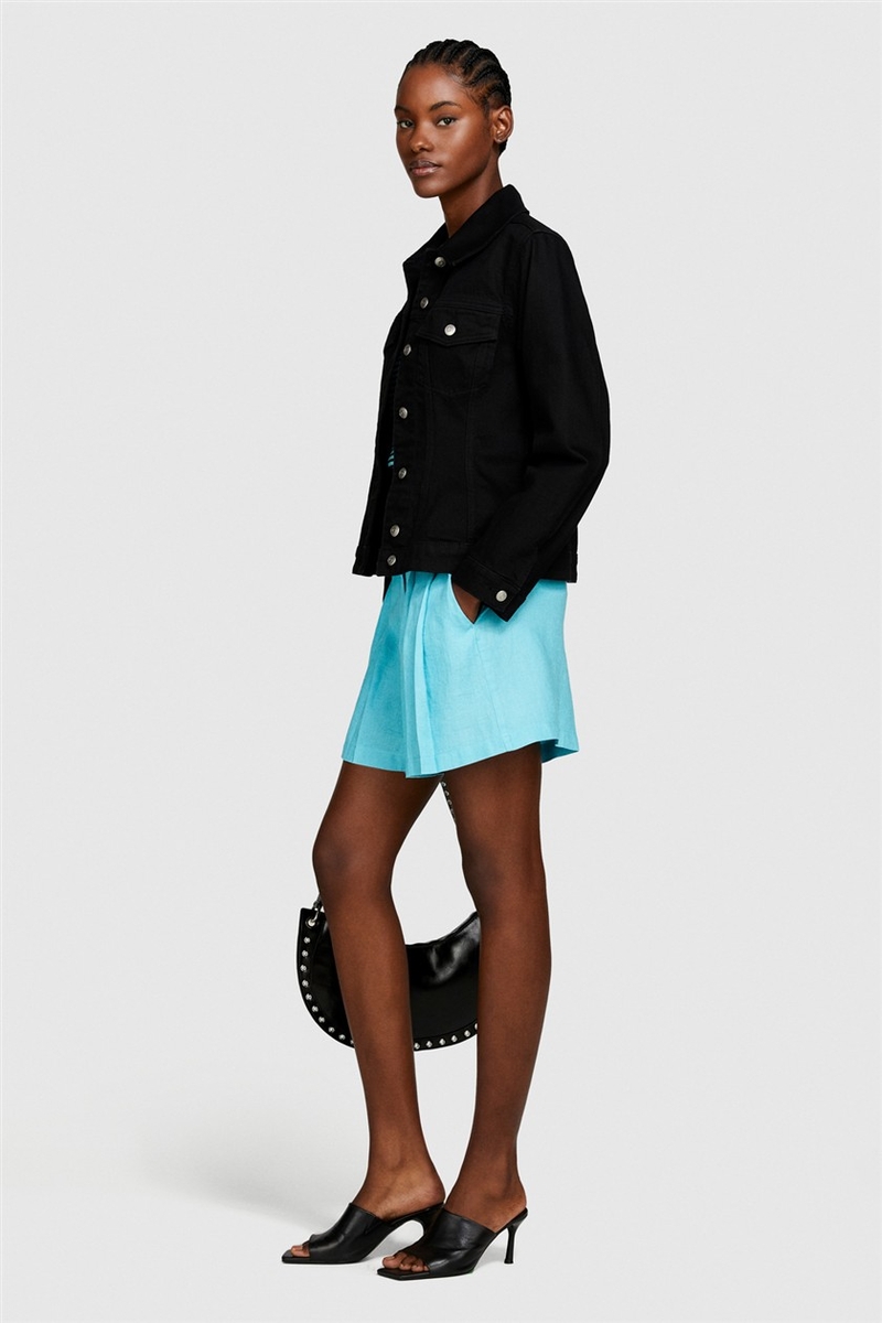 %100 Keten Önü Çift Pileli Şort Kadın 2B0 Şort - 324P4AGHL9013