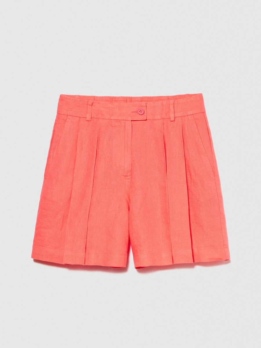 %100 Keten Önü Çift Pileli Şort Kadın Düzenlenecek Şort - 324P4AGHL9013