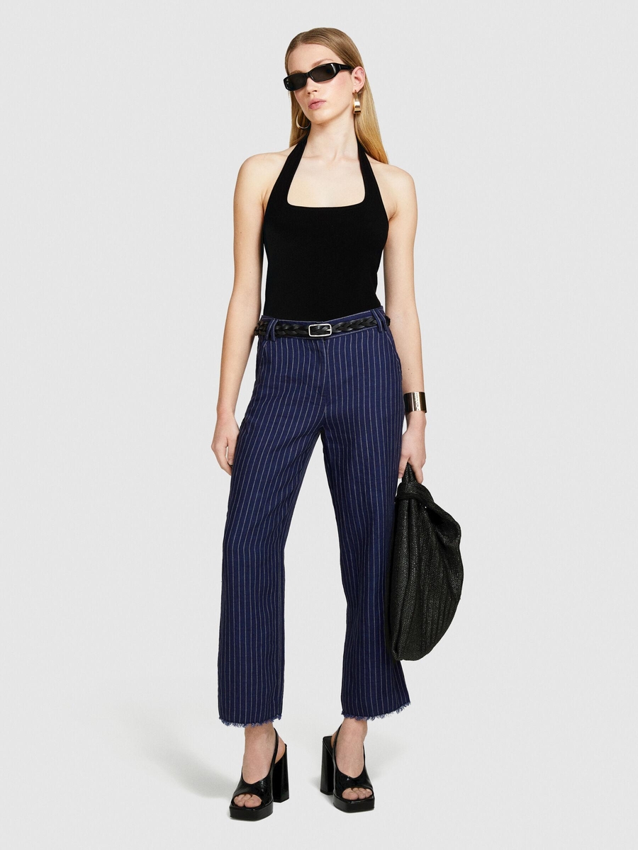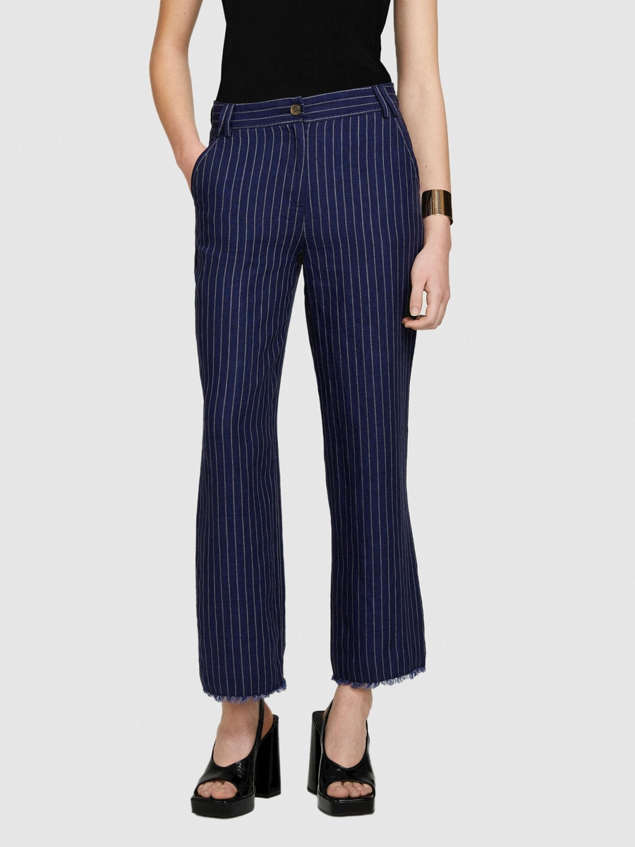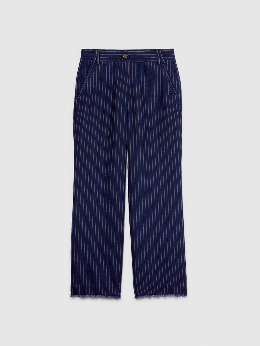 %100 Keten Paçaları Dikişsiz Düz Paça Çizgisiz Pantolon Kadın Haki Mix Pantolon - 324P4NTHLF055