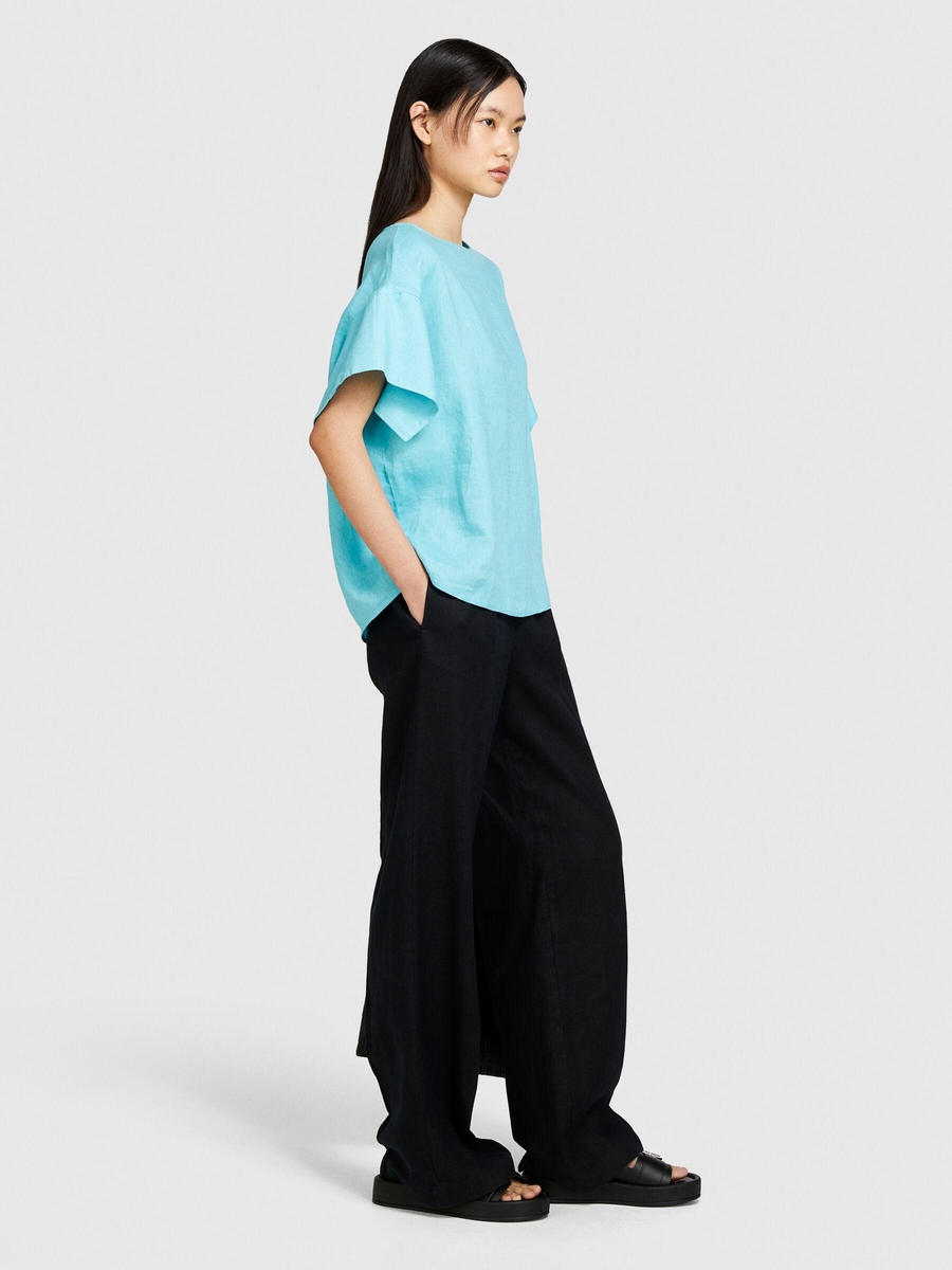%100 Keten Rahat Kesim Kayık Yaka Bluz Kadın 2B0 Bluz - 324P5BMLLQ06R