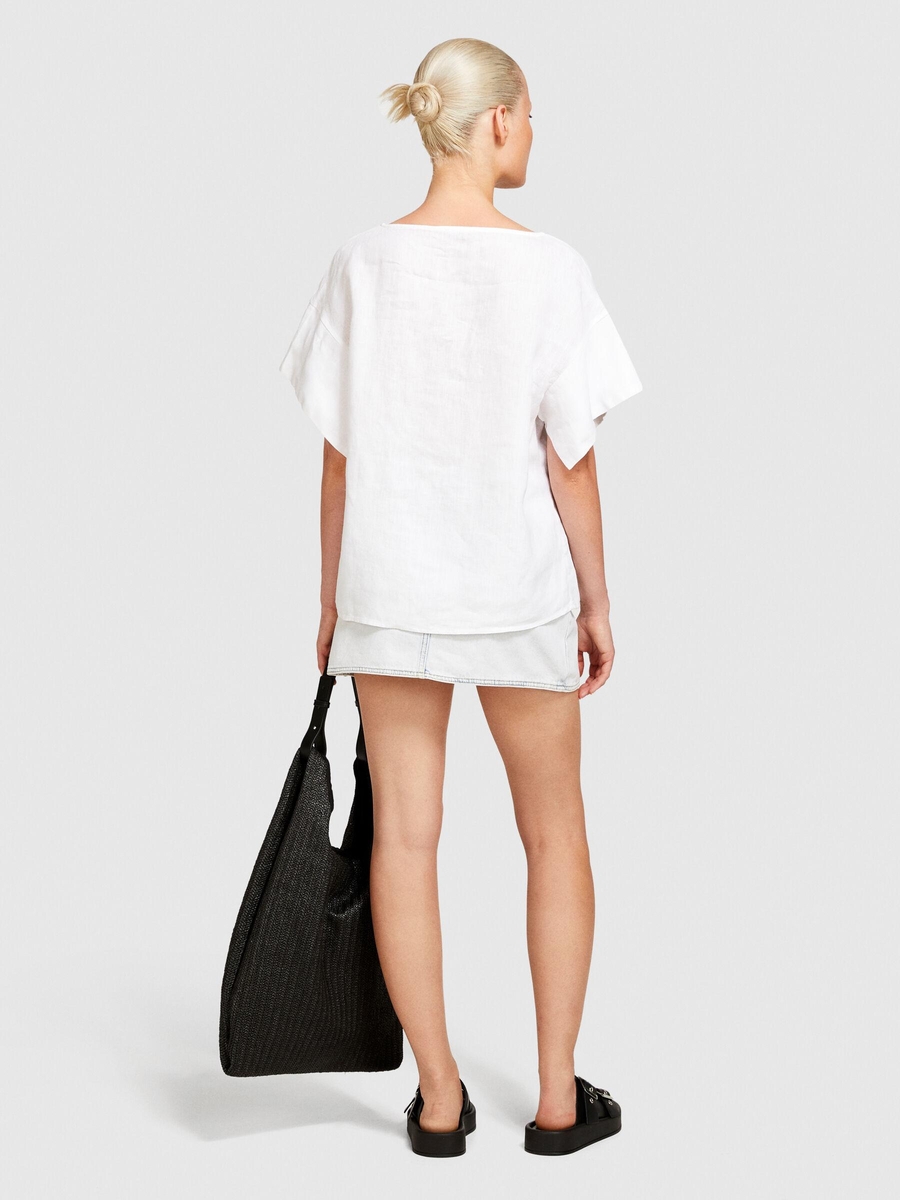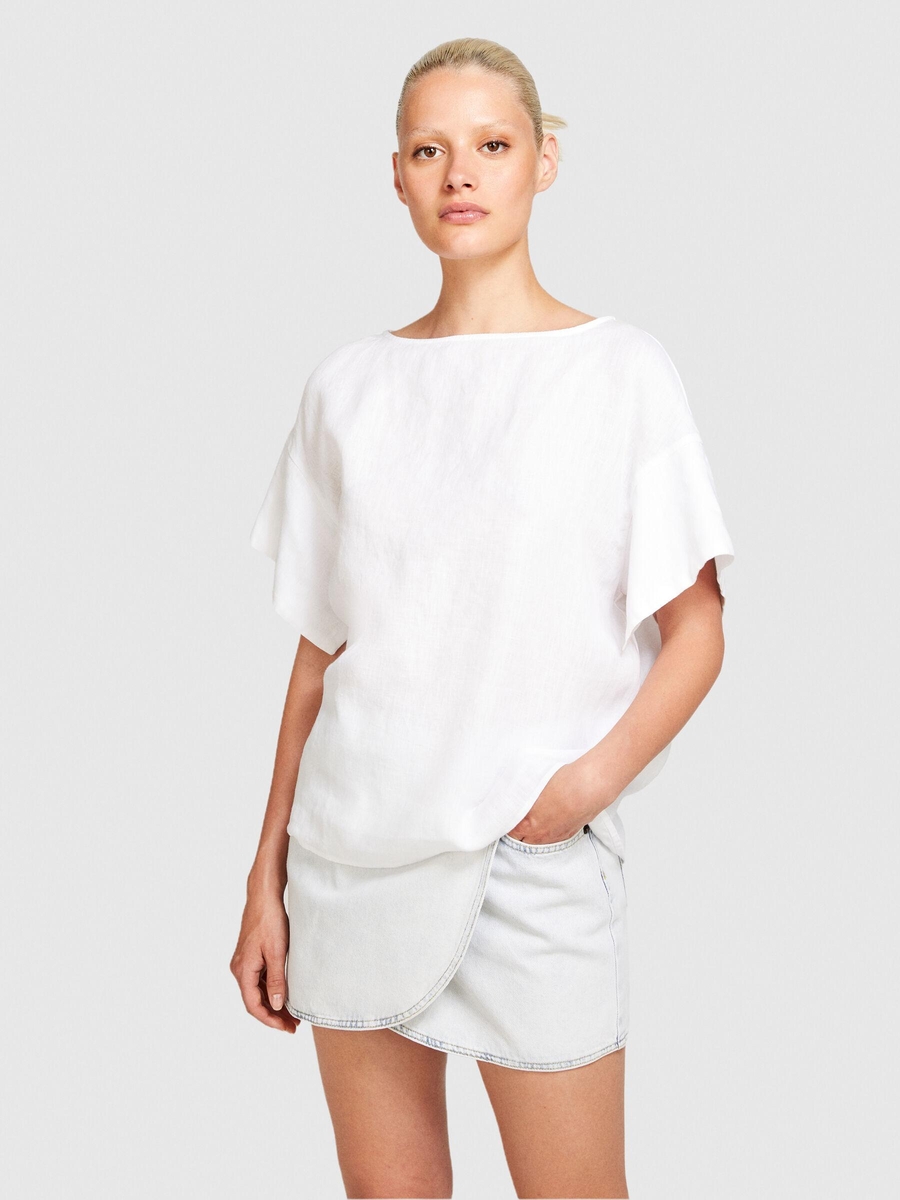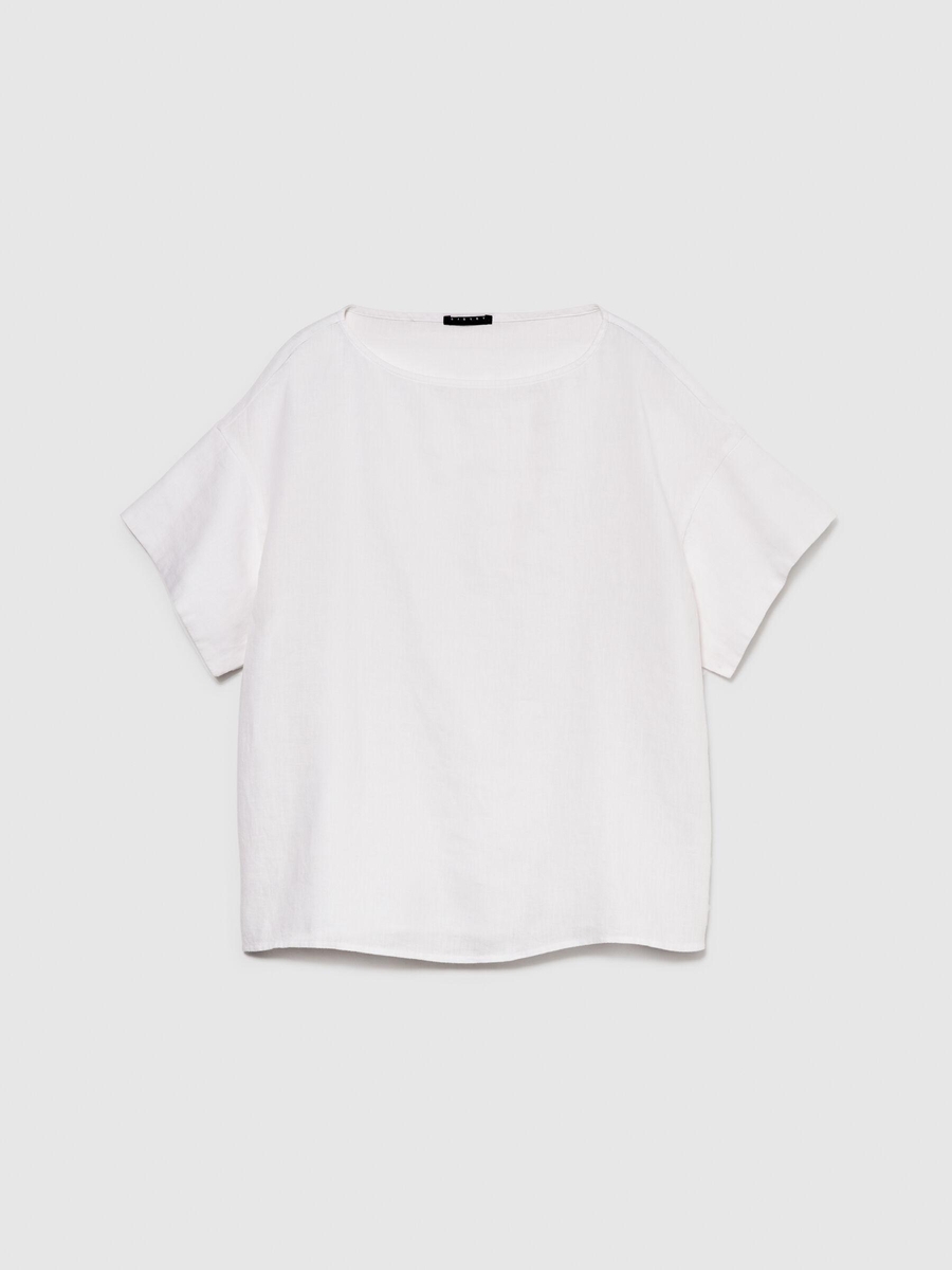 %100 Keten Rahat Kesim Kayık Yaka Bluz Kadın Beyaz Bluz - 324P5BMLLQ06R