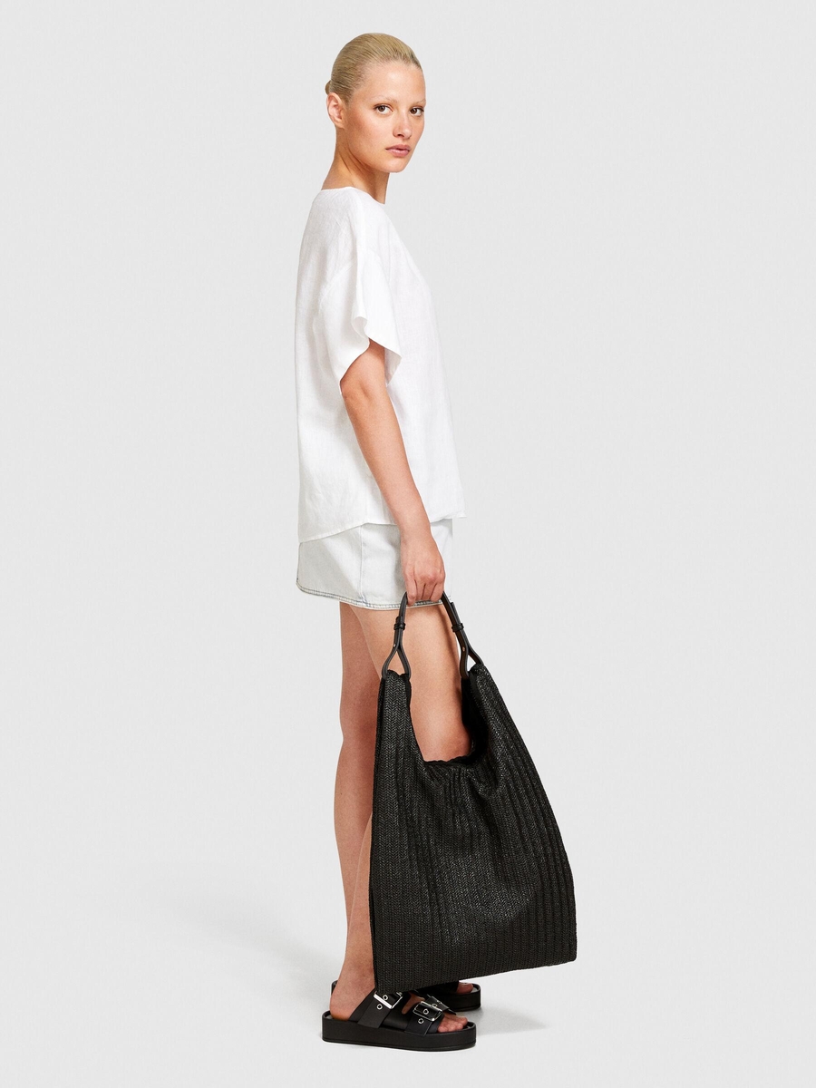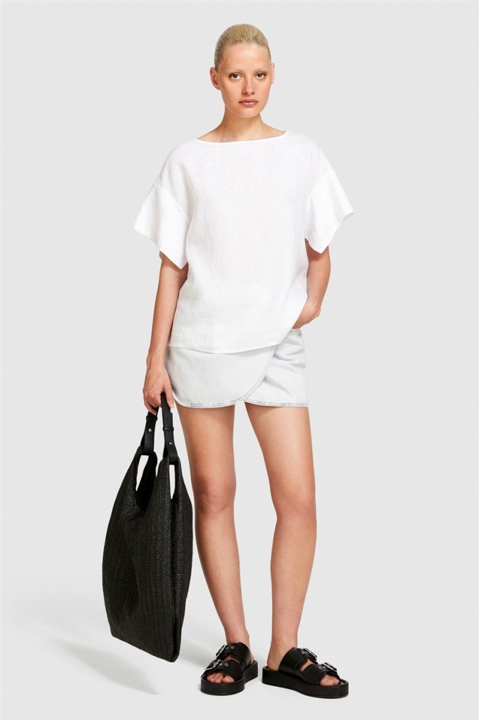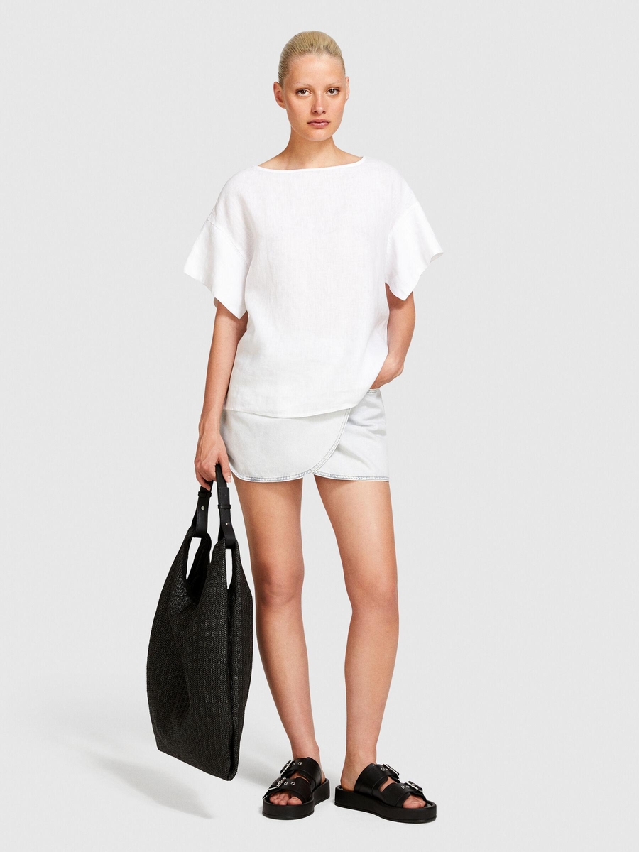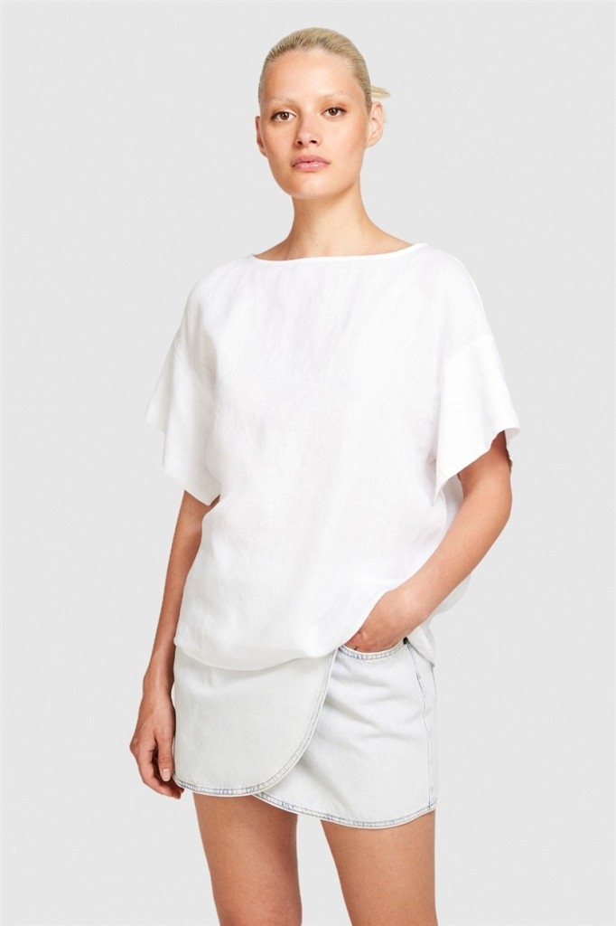 %100 Keten Rahat Kesim Kayık Yaka Bluz Kadın Beyaz Bluz - 324P5BMLLQ06R
