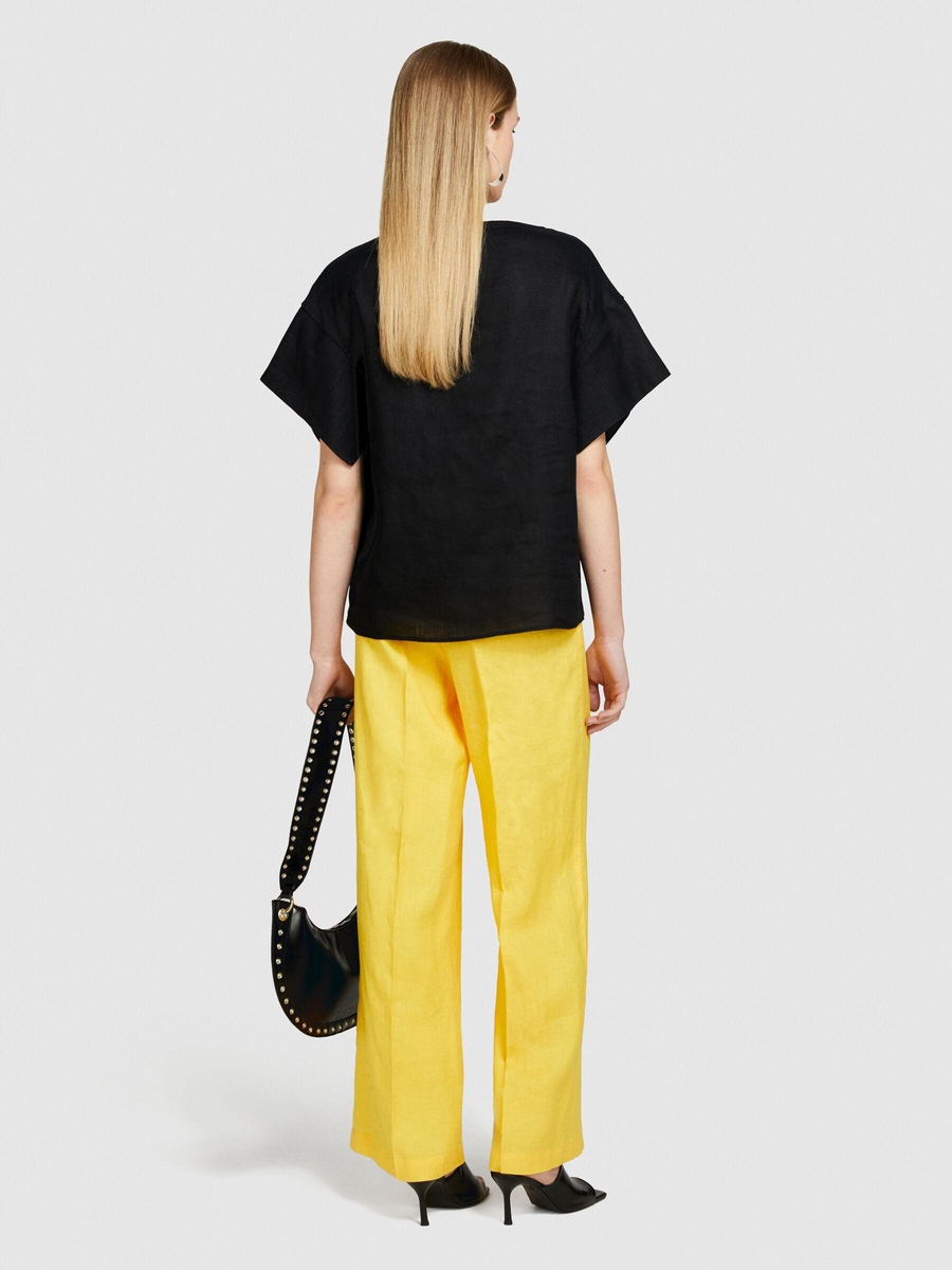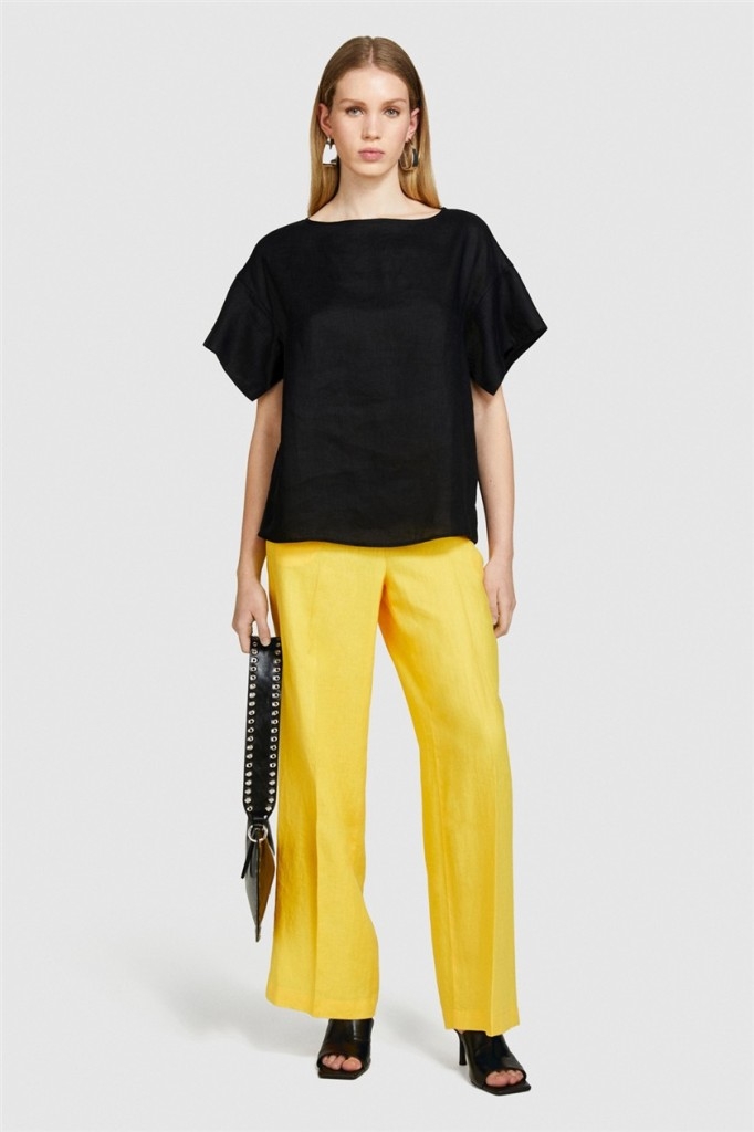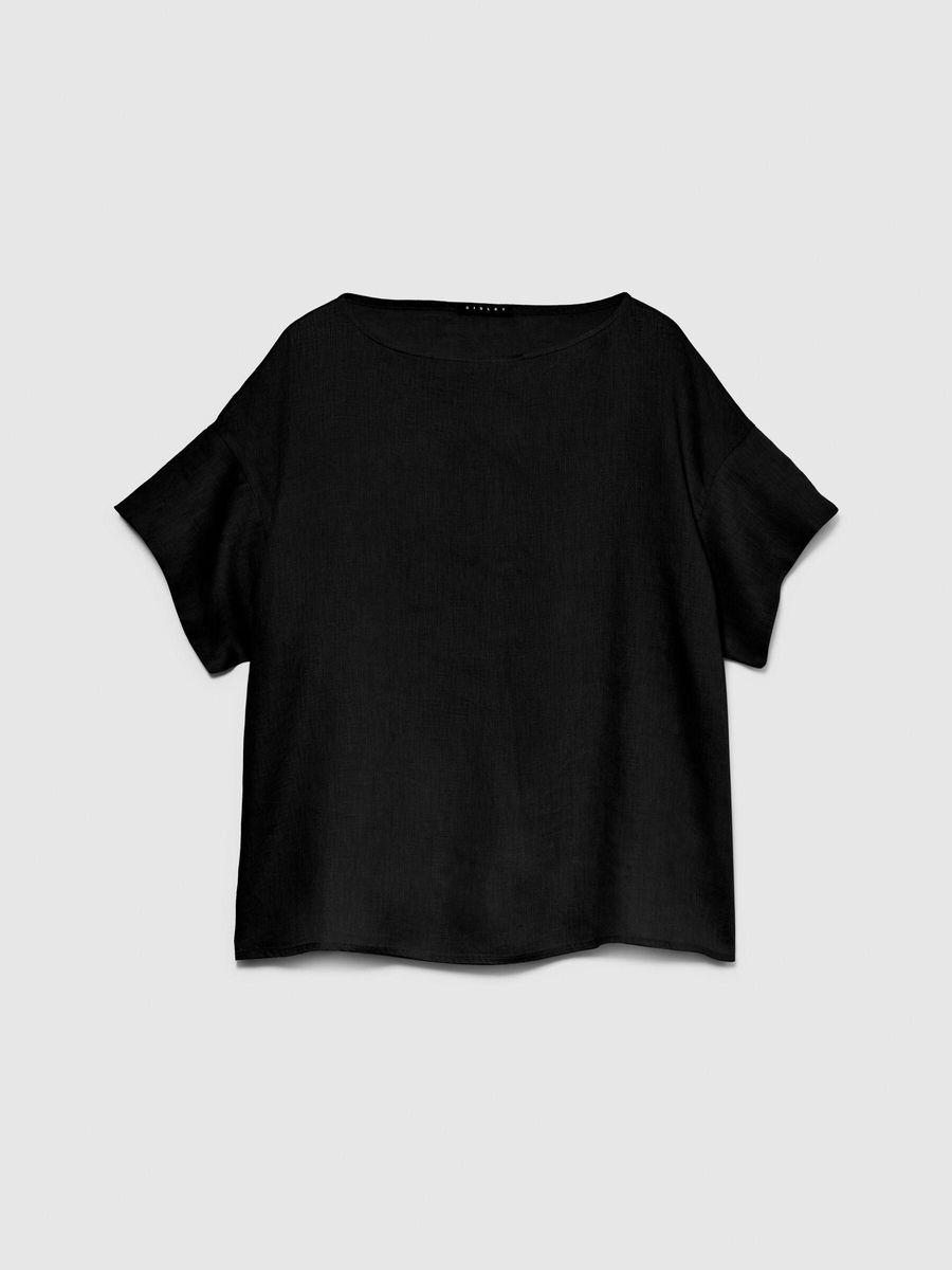 %100 Keten Rahat Kesim Kayık Yaka Bluz Kadın Siyah Bluz - 324P5BMLLQ06R