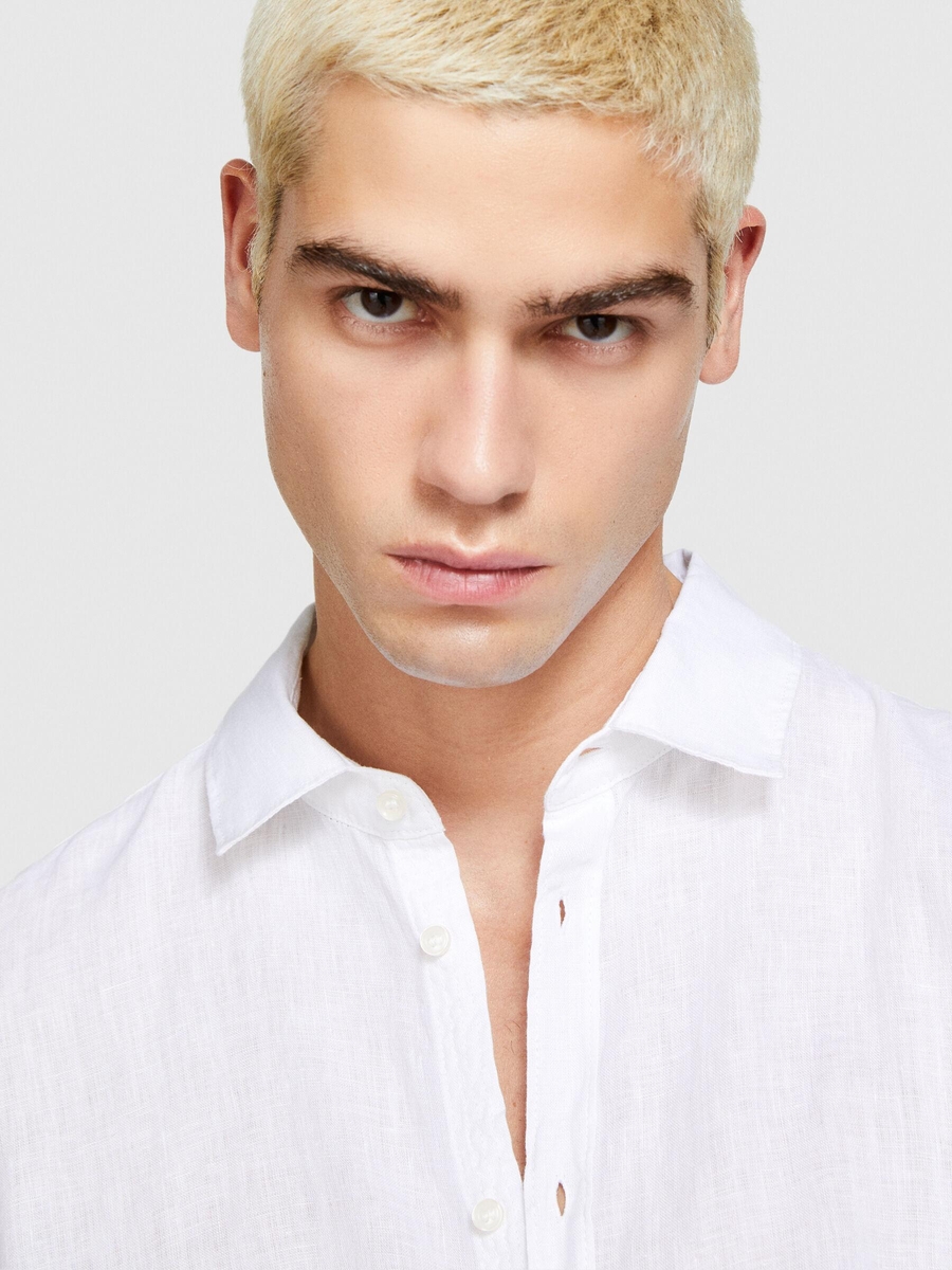 %100 Keten Regular Fit Gömlek Erkek Beyaz Gömlek - 324P5BKUSQ029