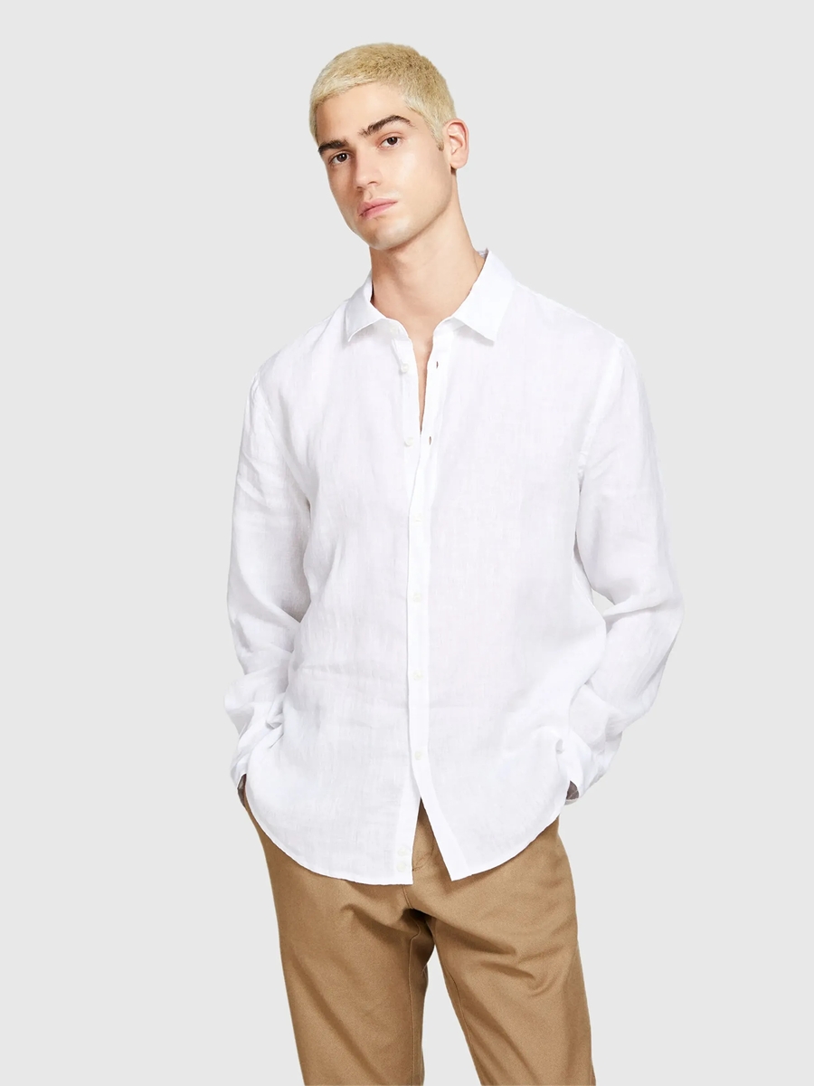 %100 Keten Regular Fit Gömlek Erkek Beyaz Gömlek - 325P5BKUSQ029