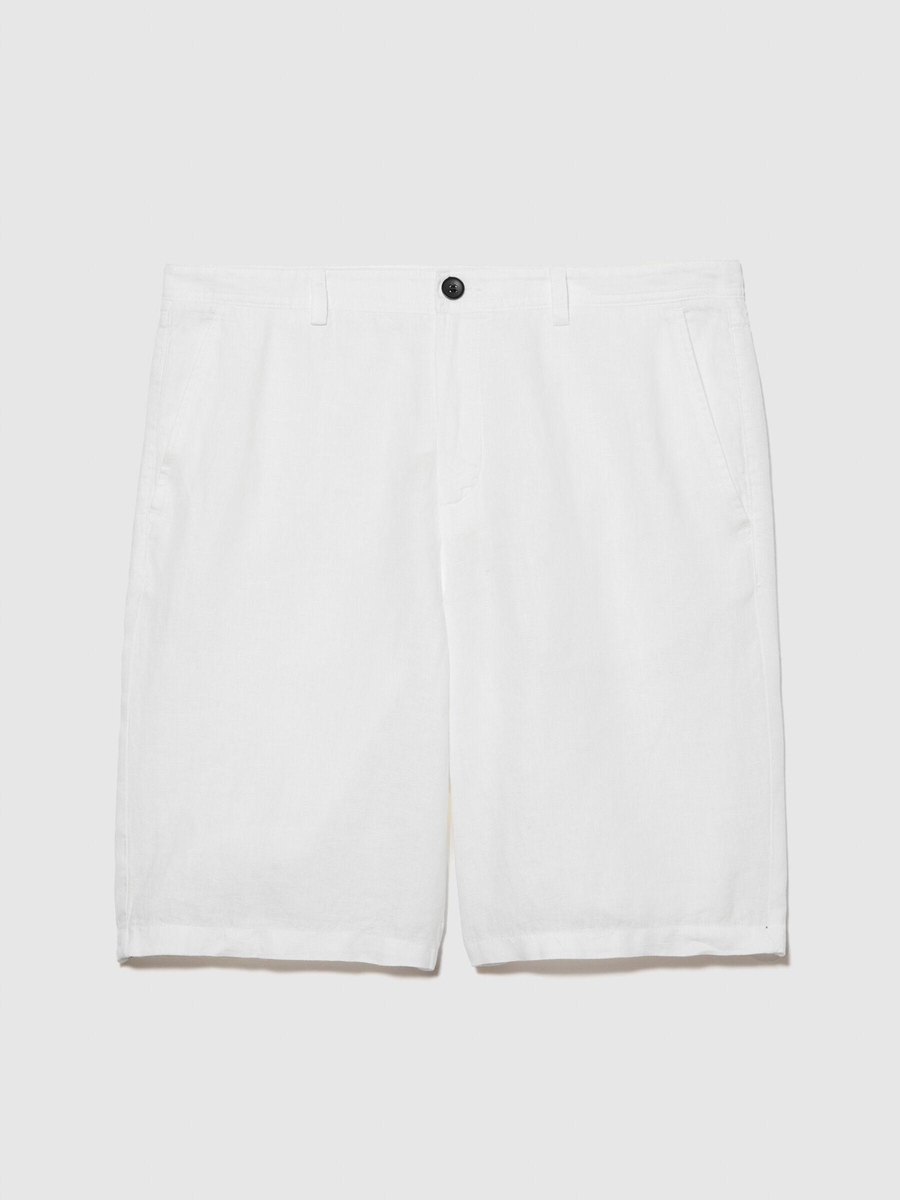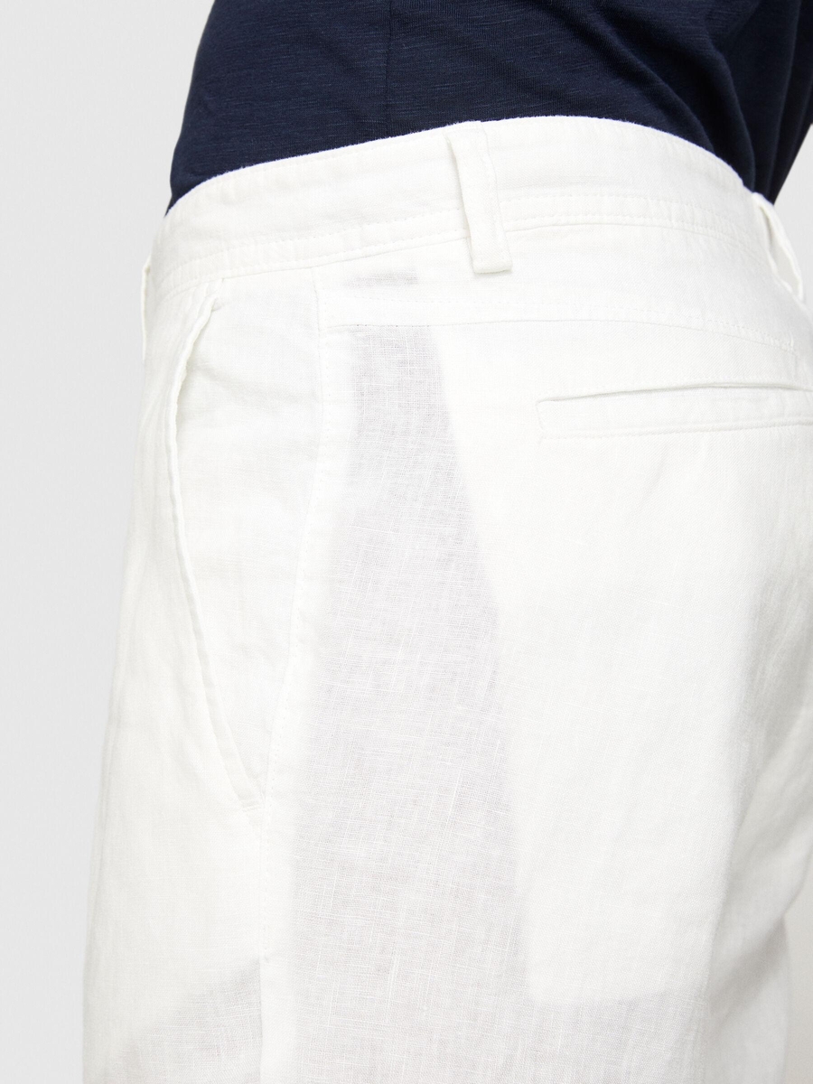%100 Keten Slim Fit Bermuda Şort Erkek Kırık Beyaz Şort - 324P4AGHS9010
