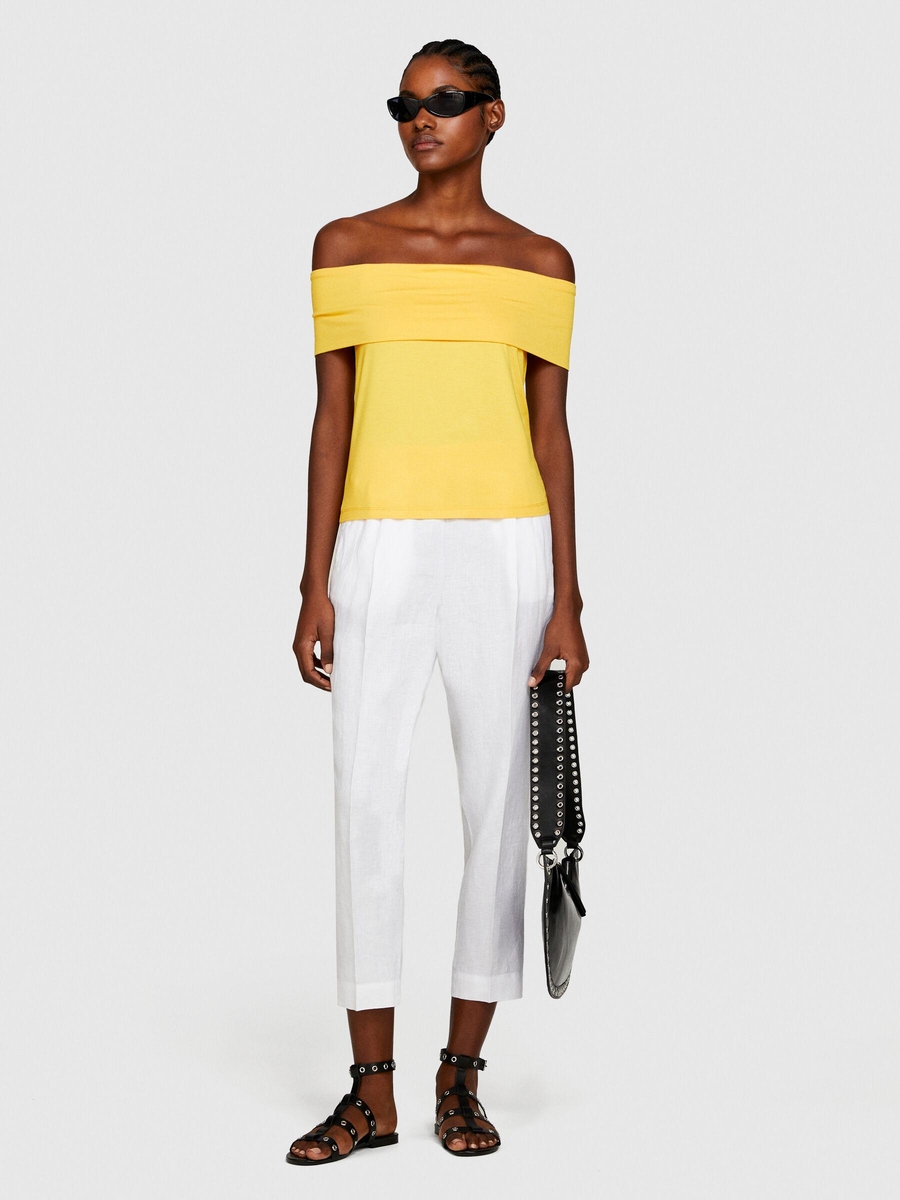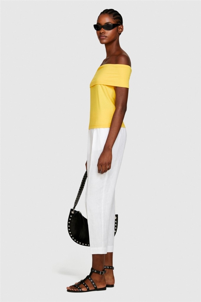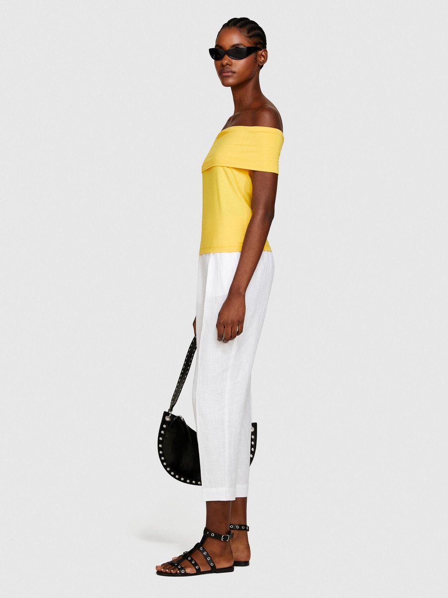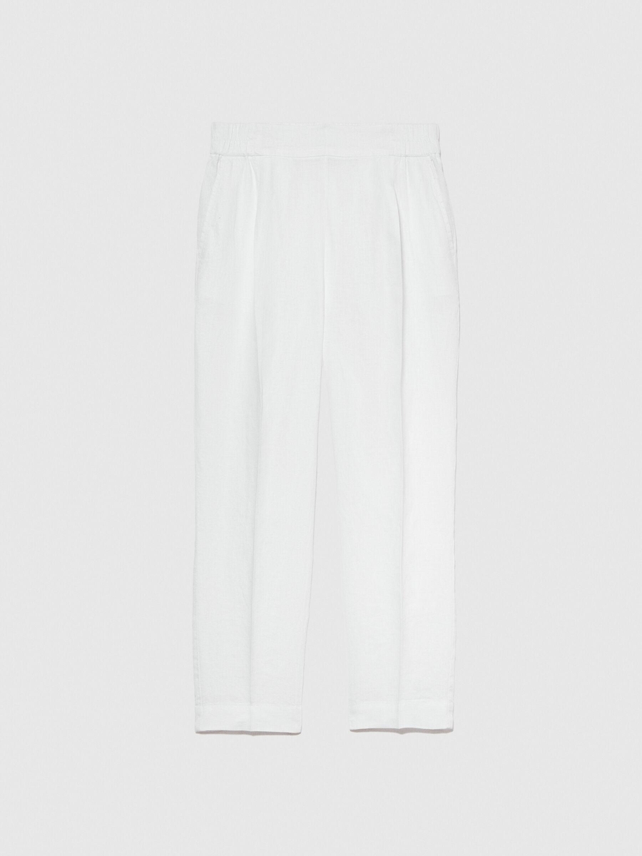%100 Keten Yanları Elastik Önü Pileli Pantolon Kadın Beyaz Pantolon - 324P4AGHLF00S