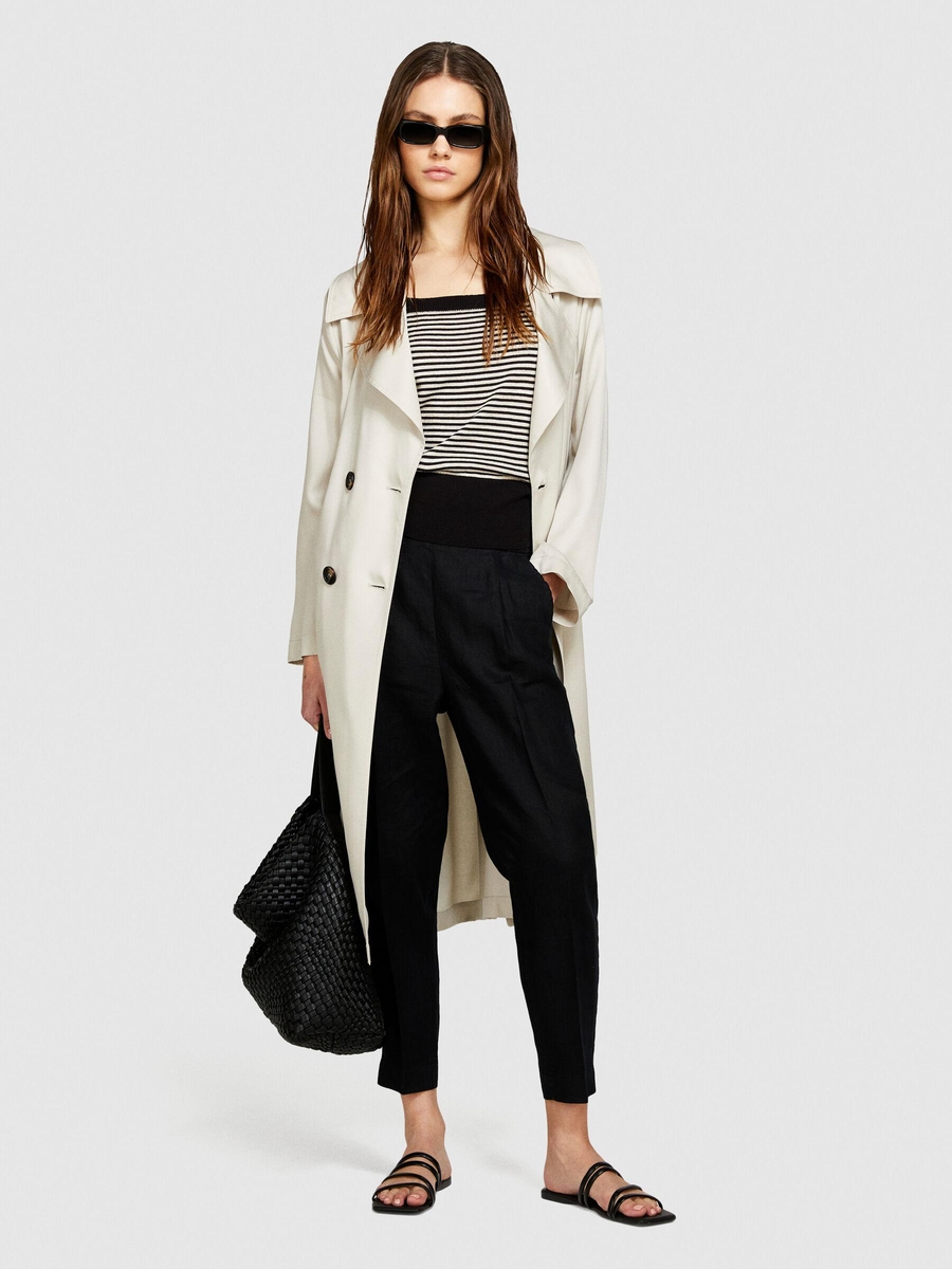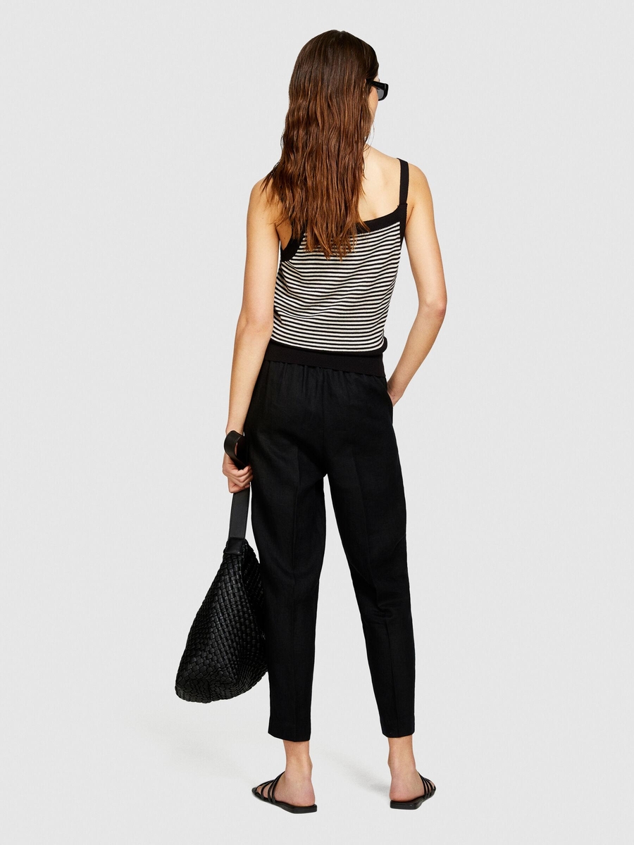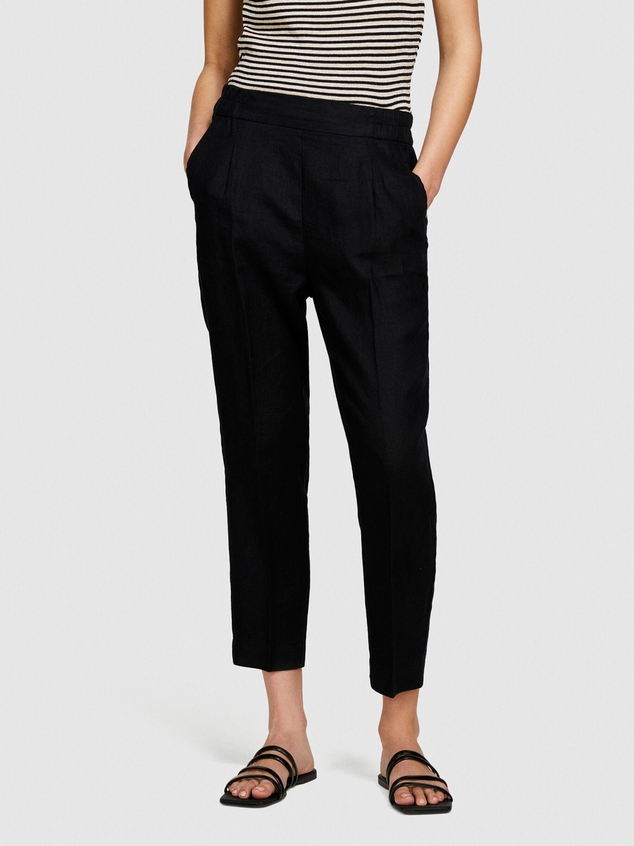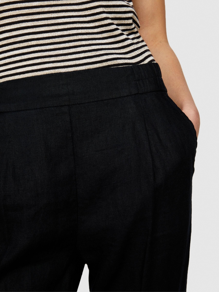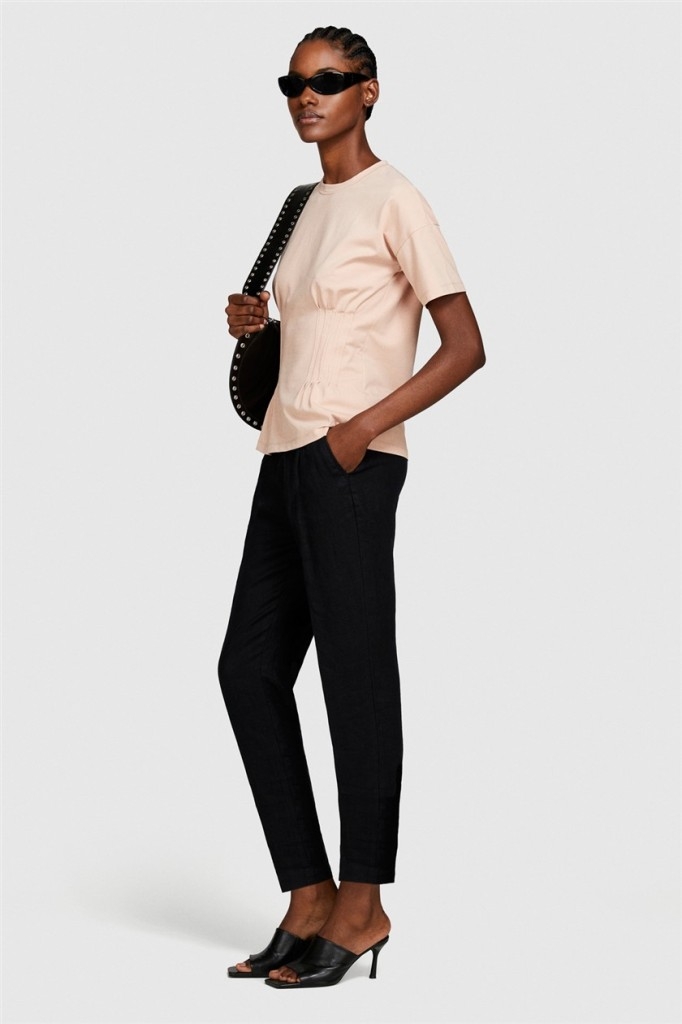 %100 Keten Yanları Elastik Önü Pileli Pantolon Kadın Siyah Pantolon - 324P4AGHLF00S