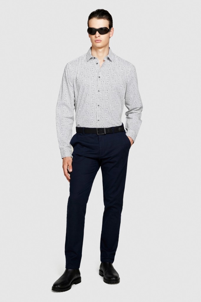 %100 Koton Desenli Poplin Gömlek Erkek Gri Gömlek - 323A597RSQ02S