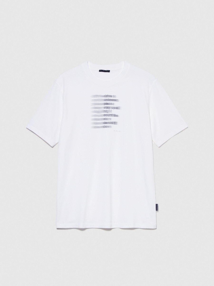 %100 Koton El Baskılı T-Shirt Erkek Beyaz T-Shirt - 323A3096S1030