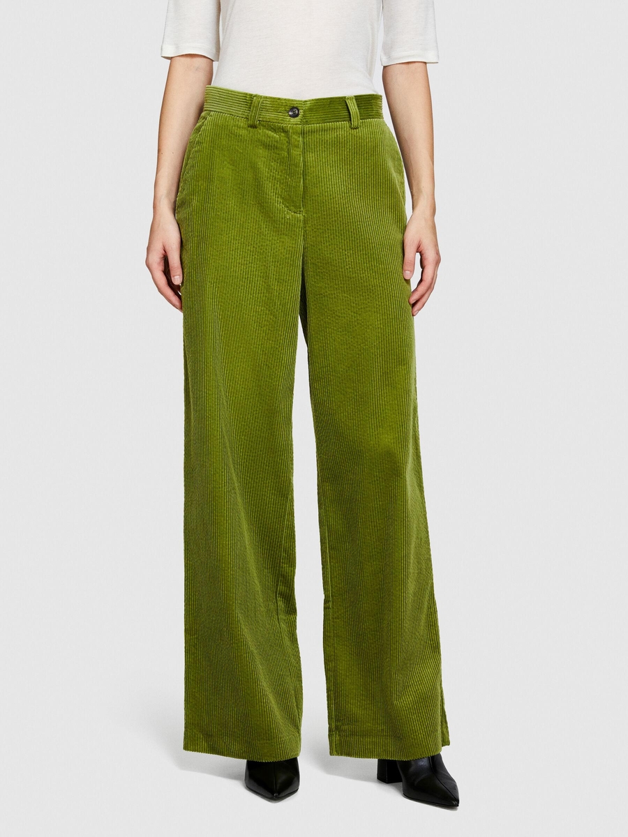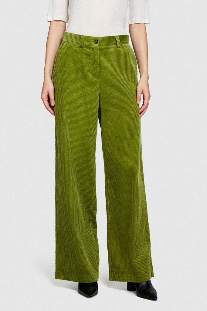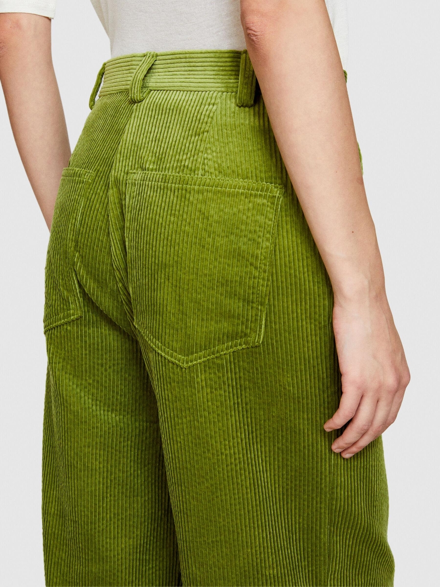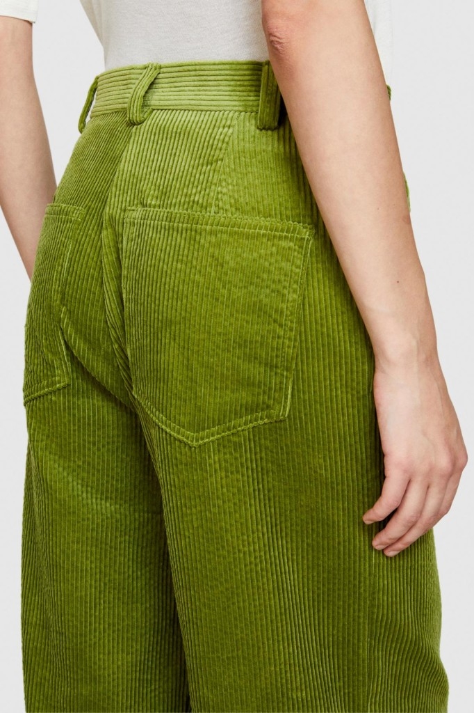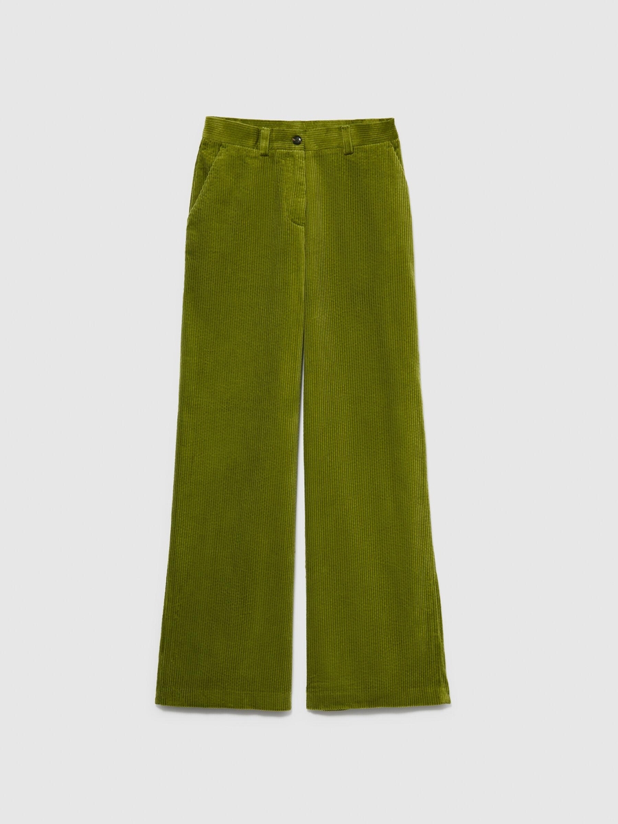 %100 Koton Geniş Paça Kadife Pantolon Kadın Yeşil T-Shirt - 323A453ULF040