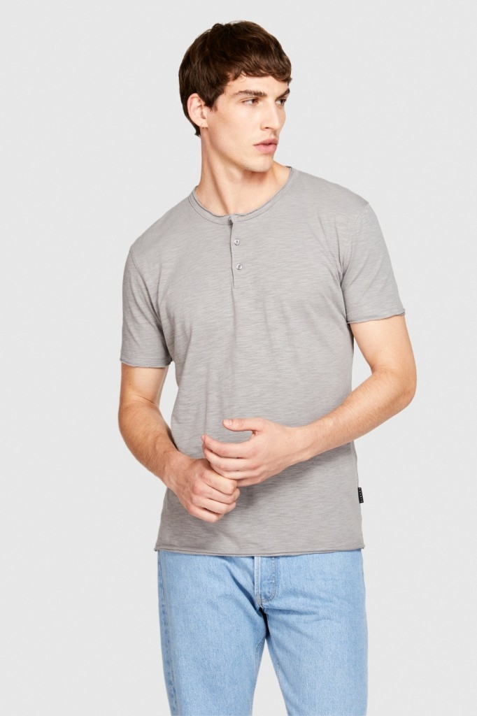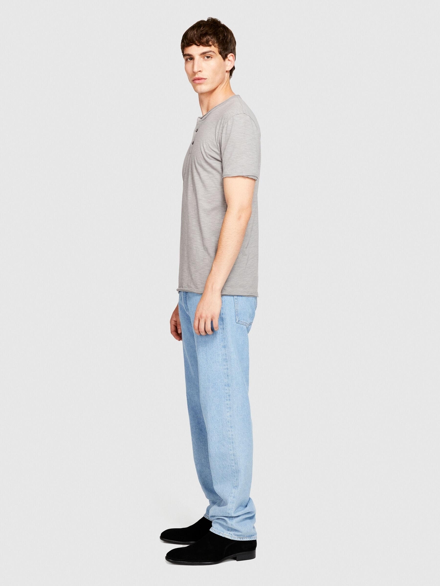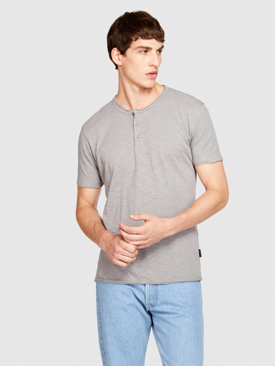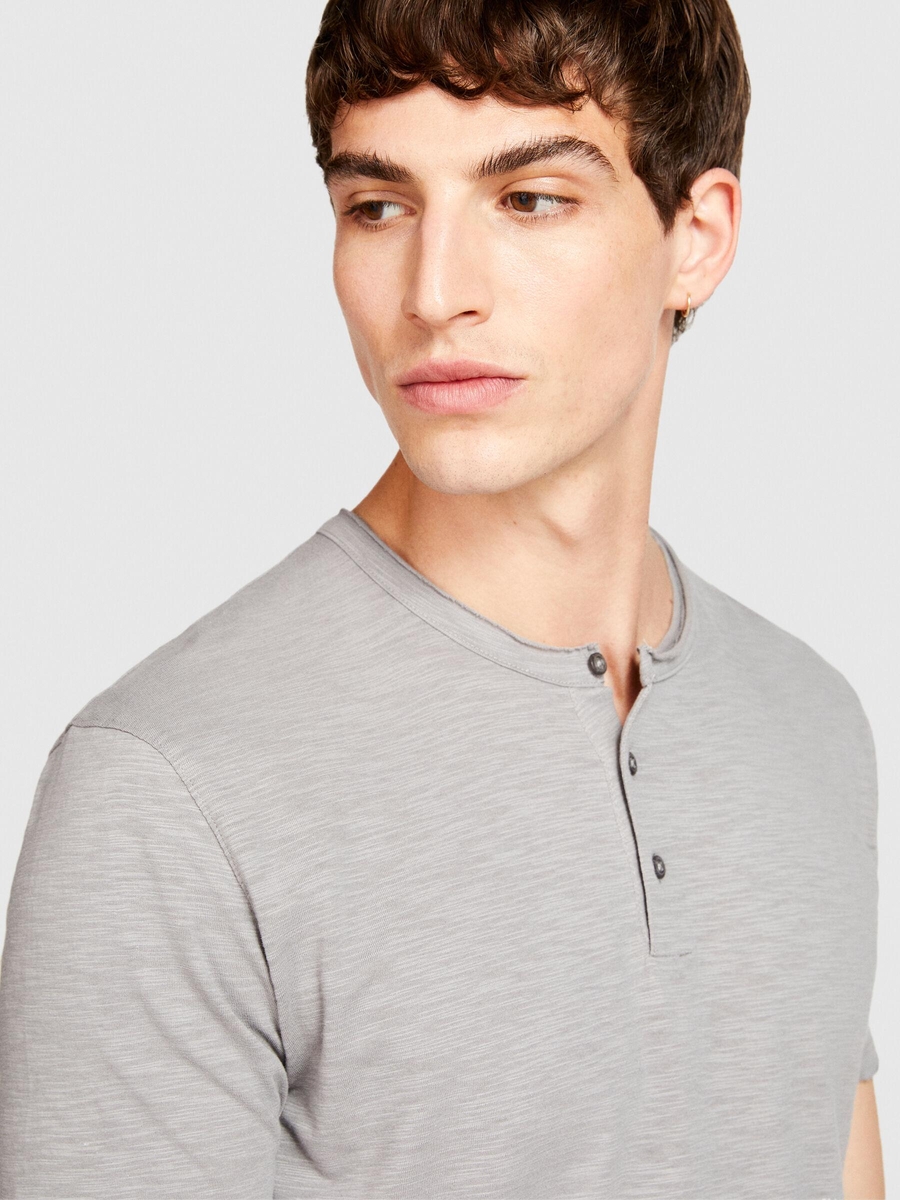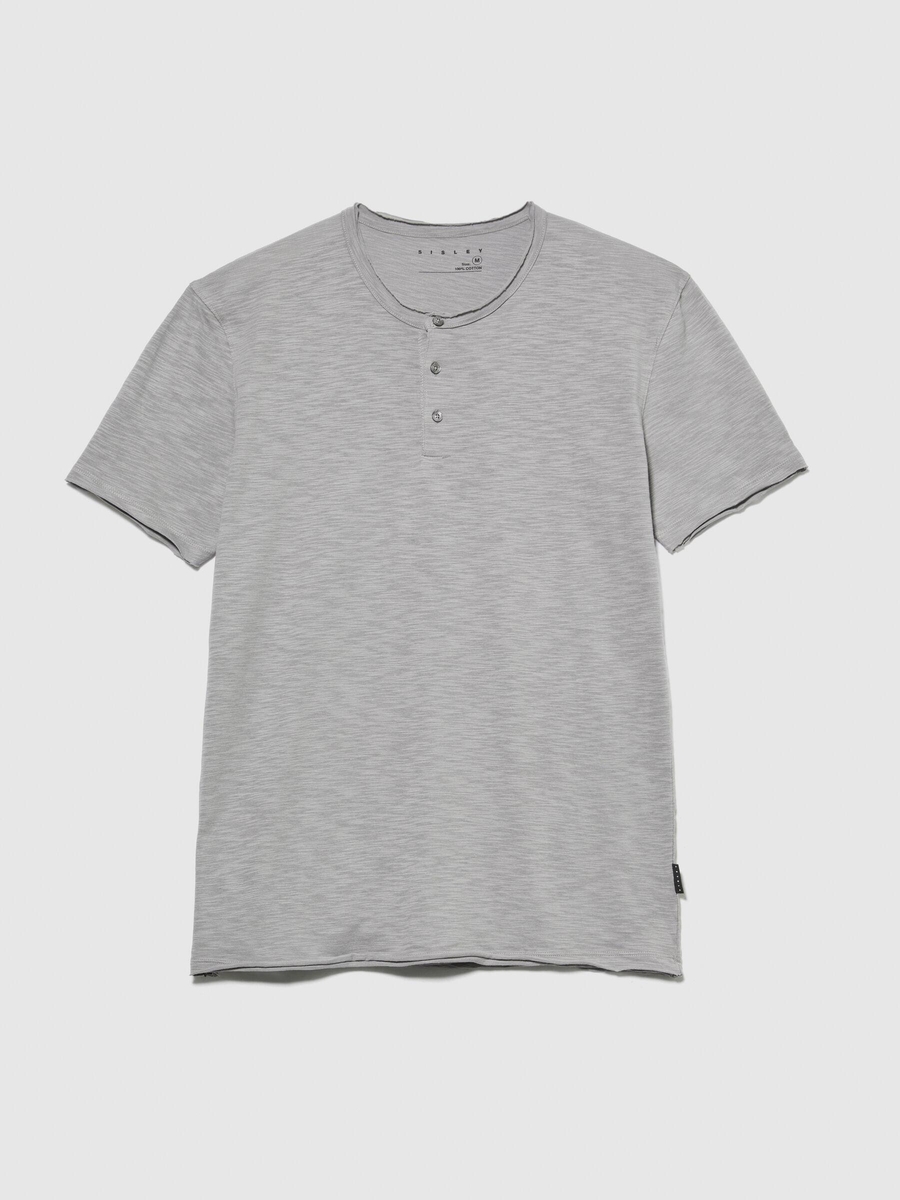 %100 Koton Slim Fit Düğme Detayli Slub T-Shirt Erkek Siyah T-Shirt - 323A3YR7S1009