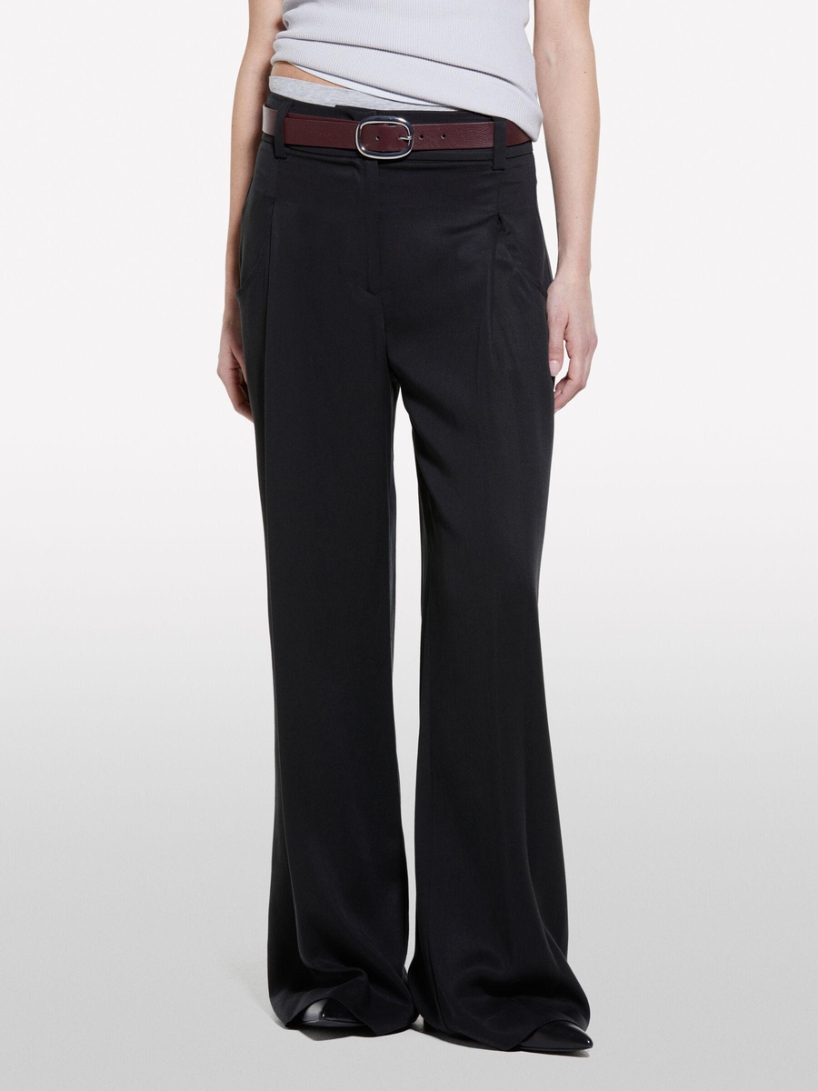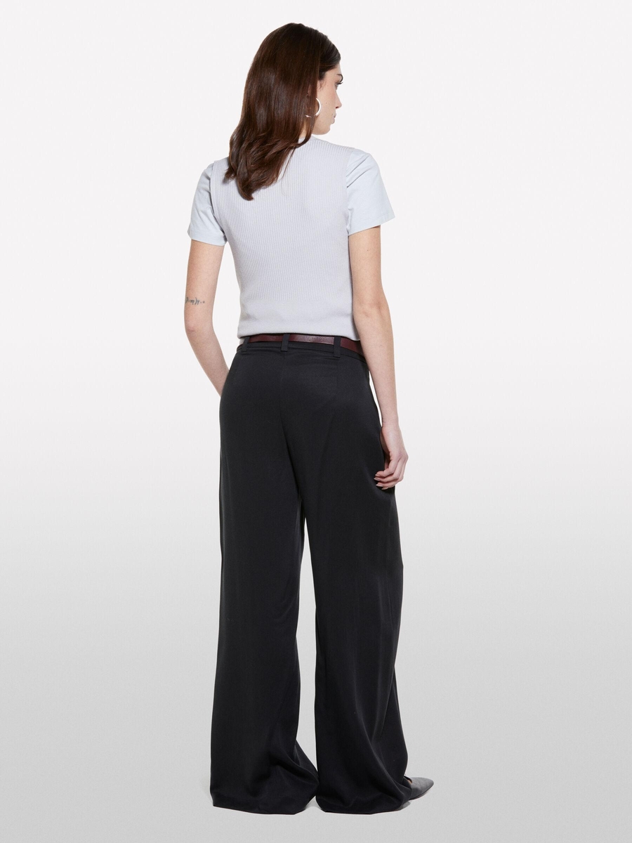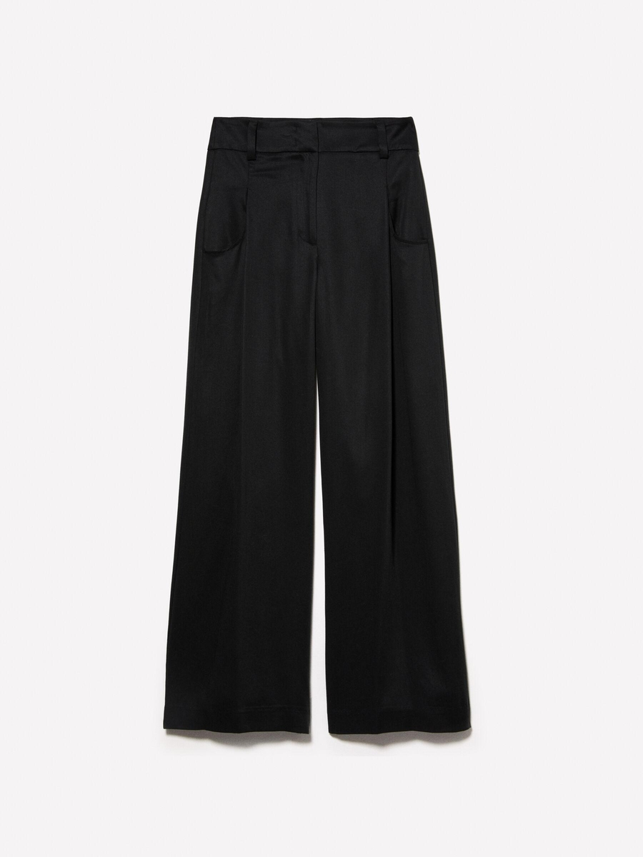 %100 Liyosel Pile Detaylı Palazzo Pantolon Kadın Siyah Pantolon - 325P4V7PLF06N