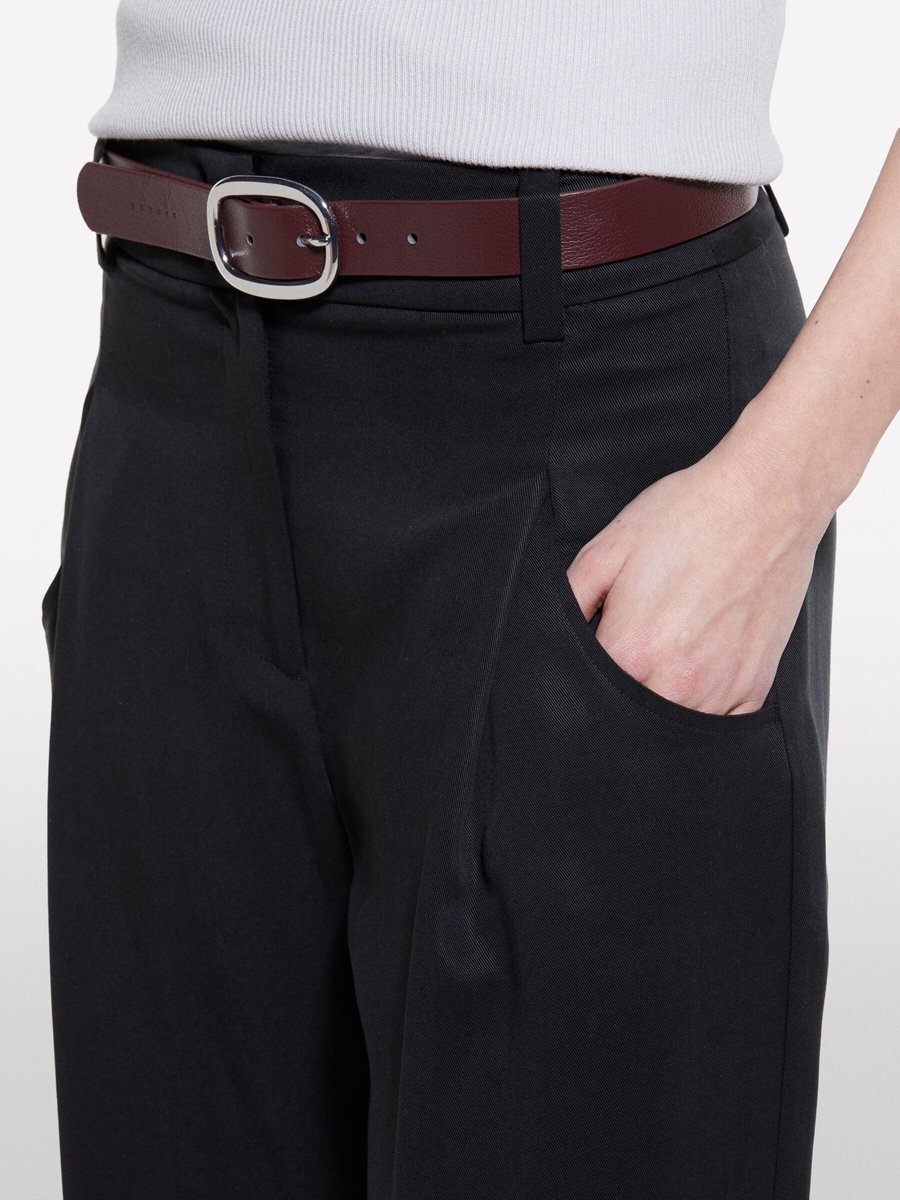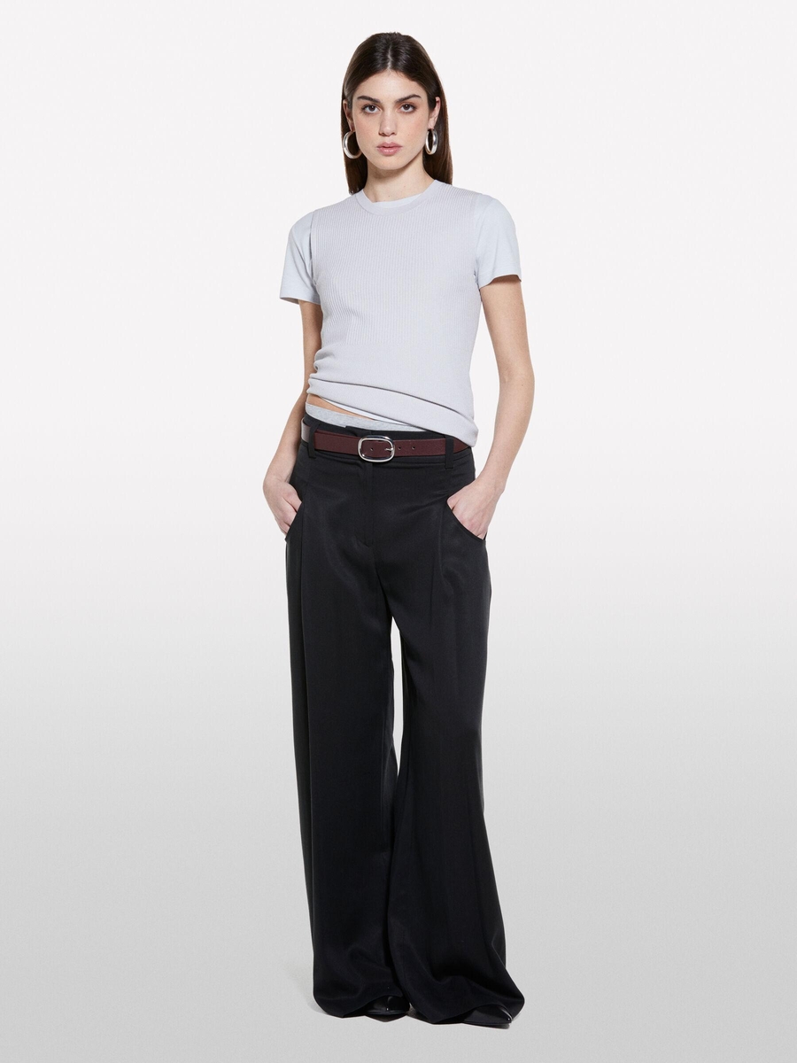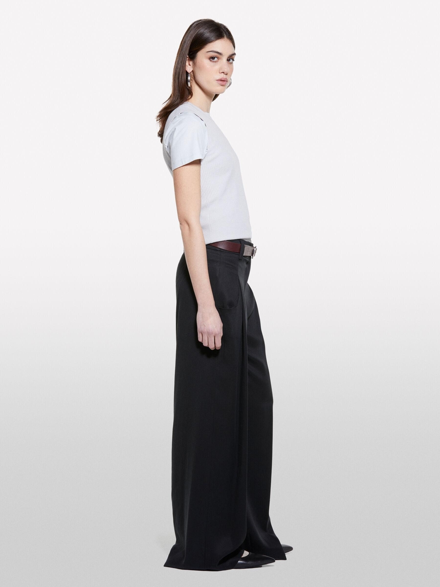 %100 Liyosel Pile Detaylı Palazzo Pantolon Kadın Siyah Pantolon - 325P4V7PLF06N