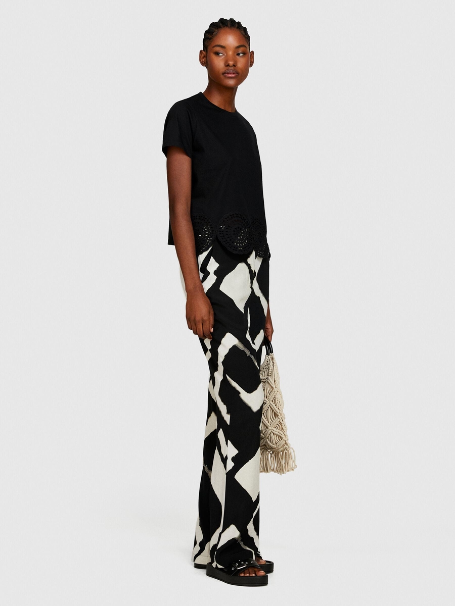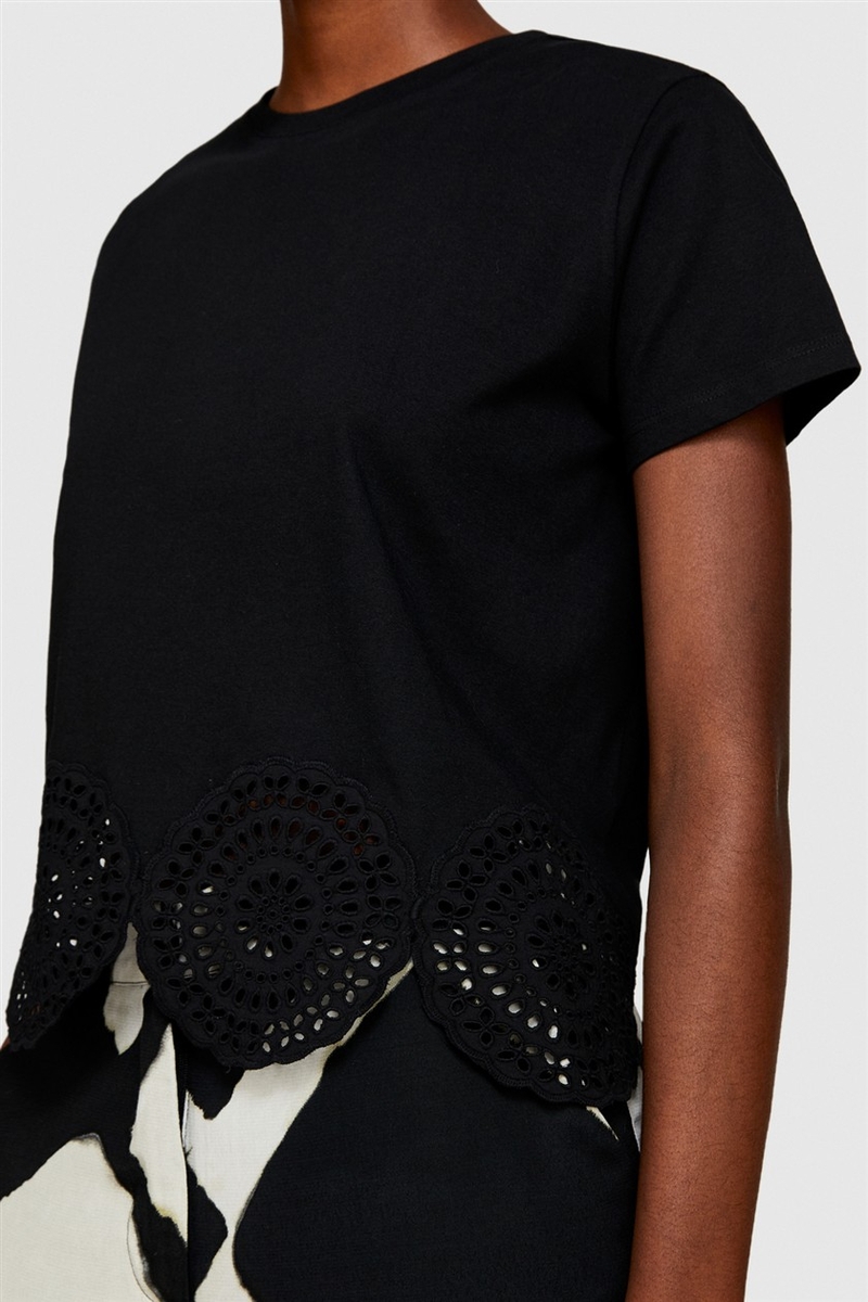 %100 Pamuk Altı Dantel Detaylı Bisiklet Yaka T-Shirt Kadın Siyah T-Shirt - 324P3F1QL105I