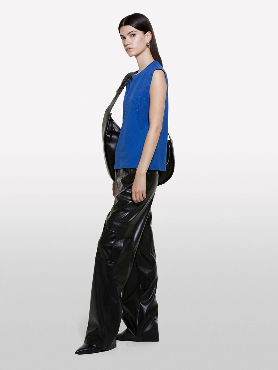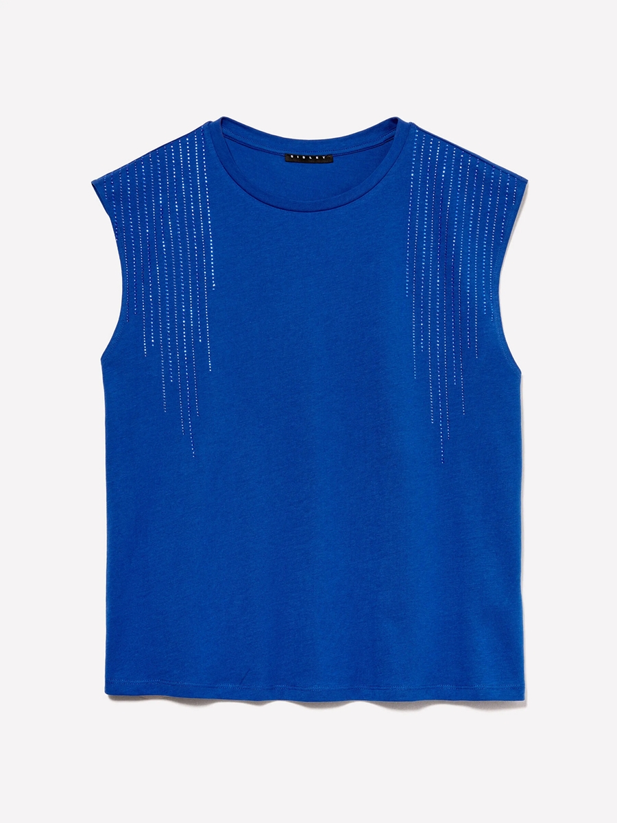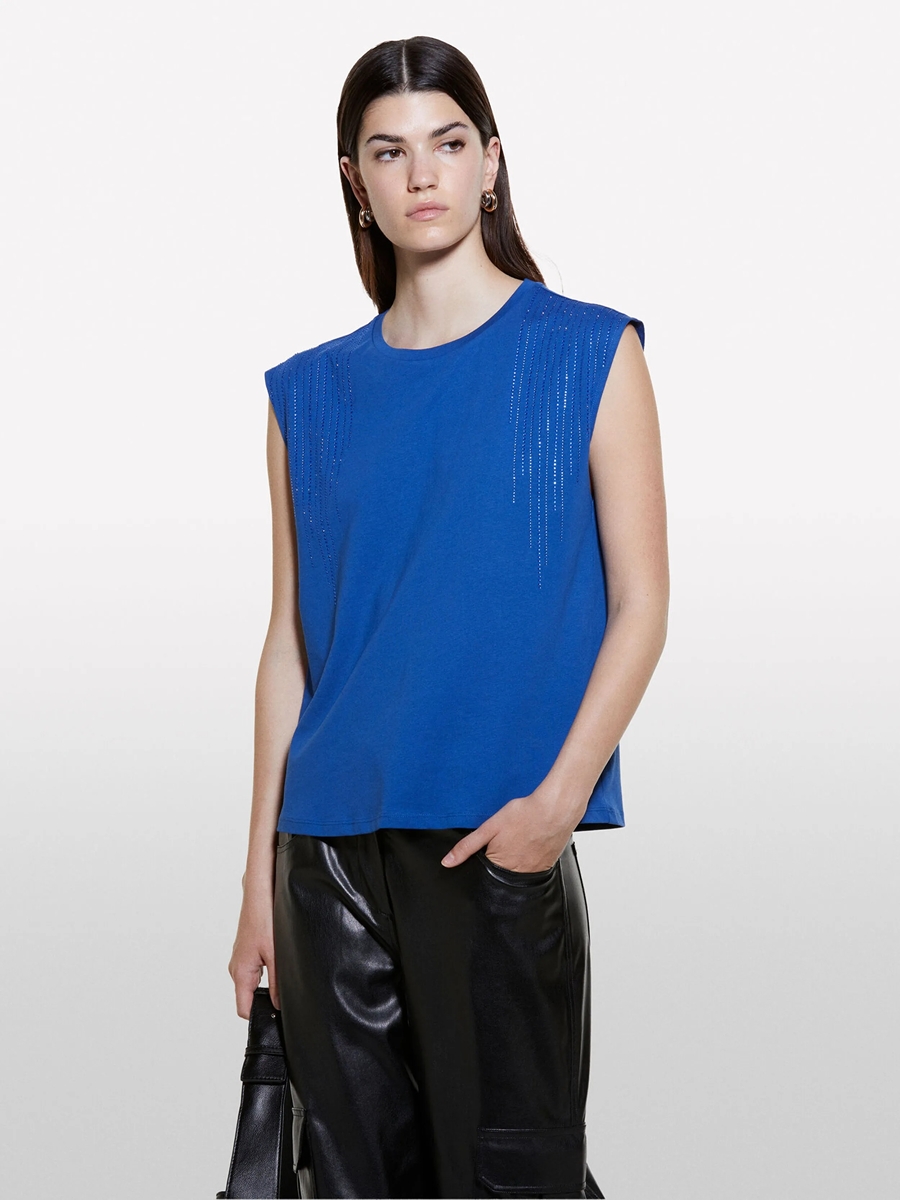 %100 Pamuk Aplikeli Bisiklet Yaka Kolsuz Bluz Kadın Saks Mavisi Bluz - 324A351SL106J