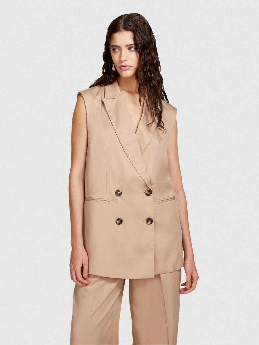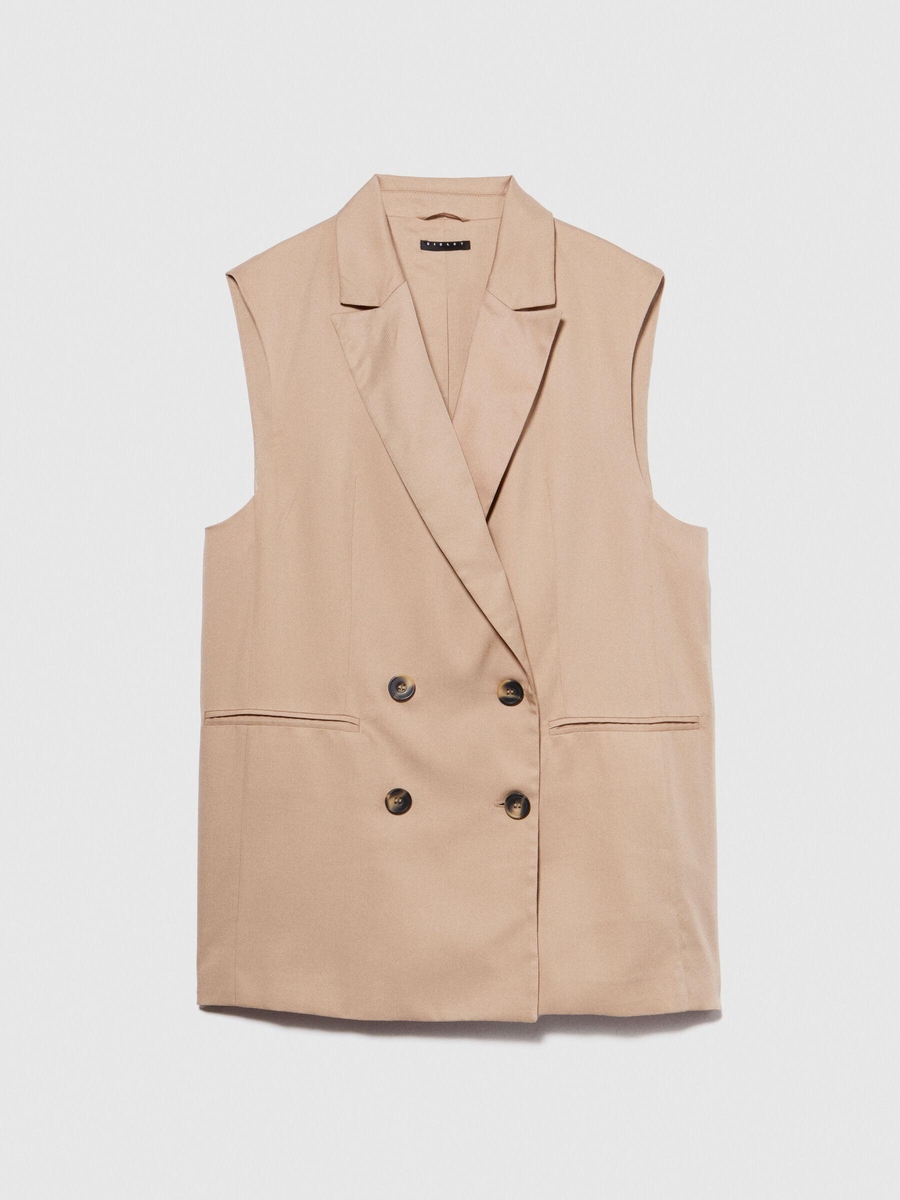 %100 Pamuk Astar Maskülen Kesin Geniş V Yaka Kruvaze Yelek Kadın 1M7 Yelek - 324P283GLJ00I