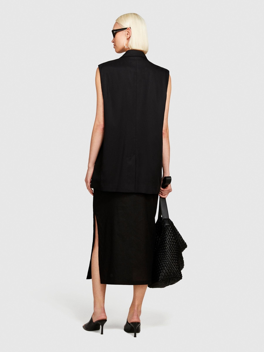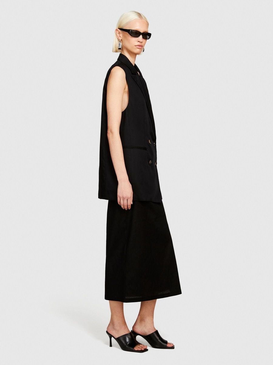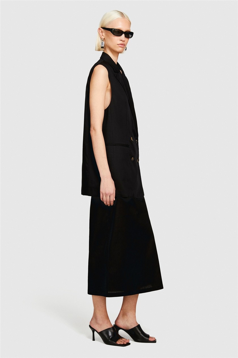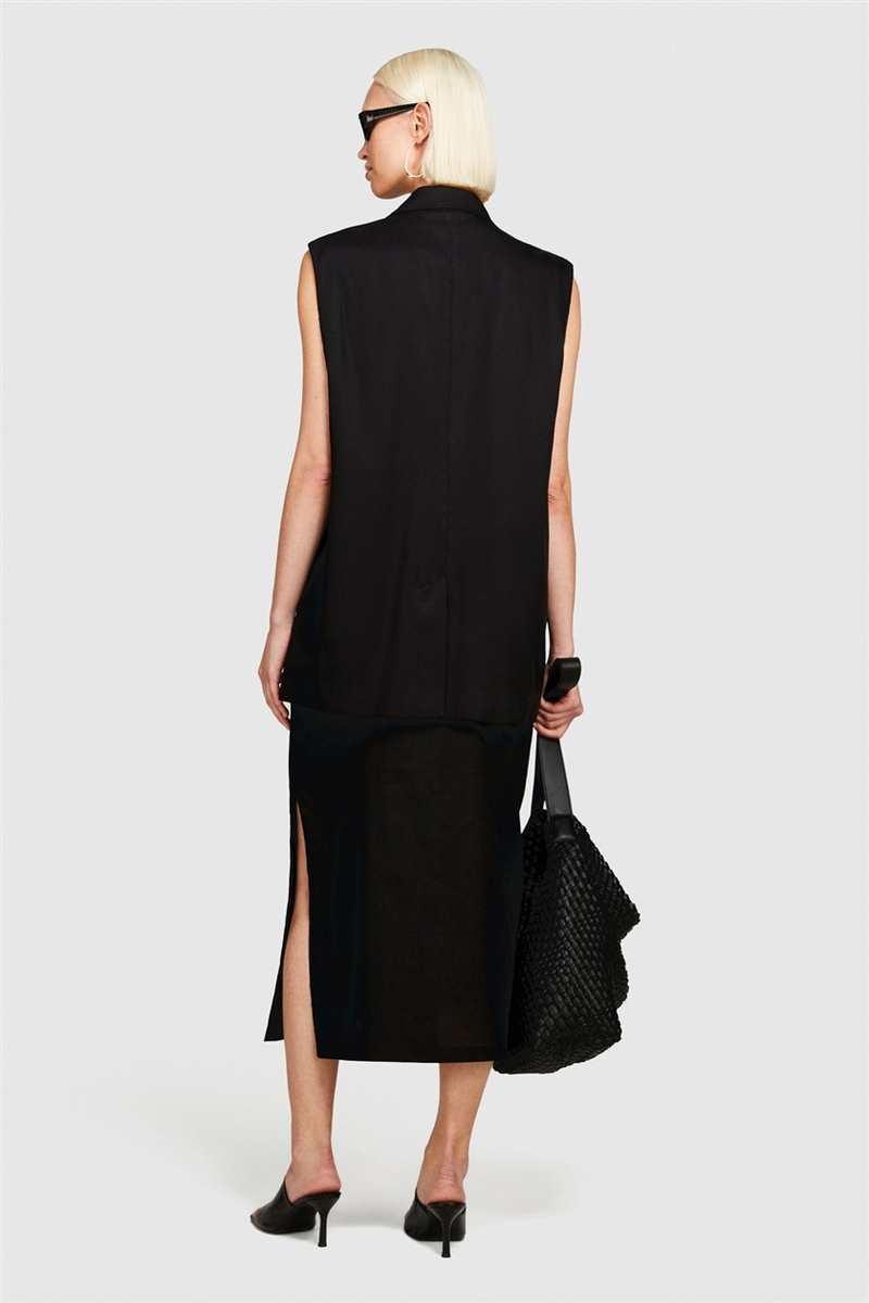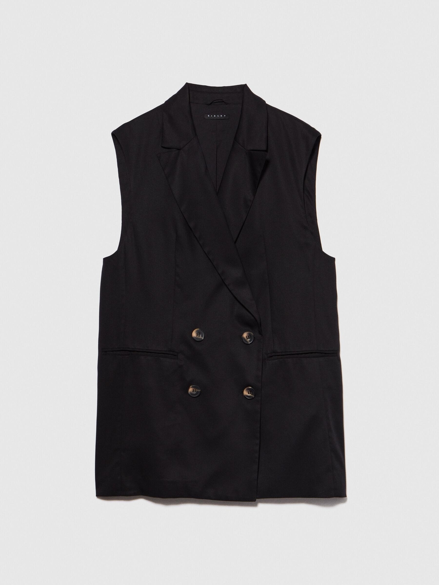 %100 Pamuk Astar Maskülen Kesin Geniş V Yaka Kruvaze Yelek Kadın Siyah Yelek - 324P283GLJ00I