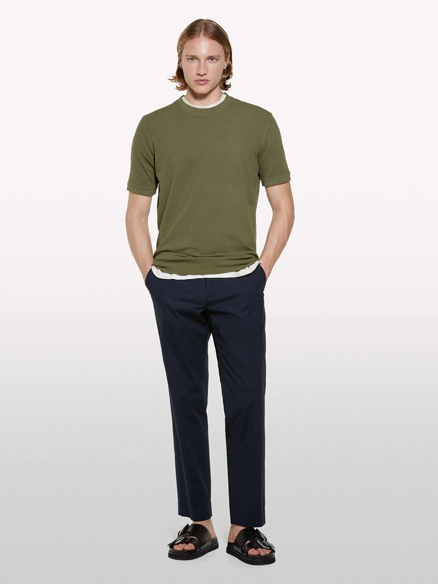 %100 Pamuk Bisiklet Yaka Regular Fit T-Shirt Erkek Yeşil T-Shirt - 325P3089S104J