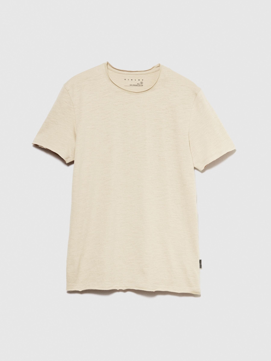 %100 Pamuk Bisiklet Yaka Slim Fit T-Shirt Erkek Bej T-Shirt - 324P3WF0S101K