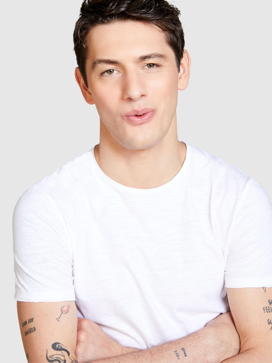 %100 Pamuk Bisiklet Yaka Slim Fit T-Shirt Erkek Beyaz T-Shirt - 324P3WF0S101K