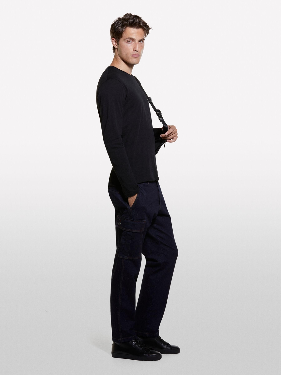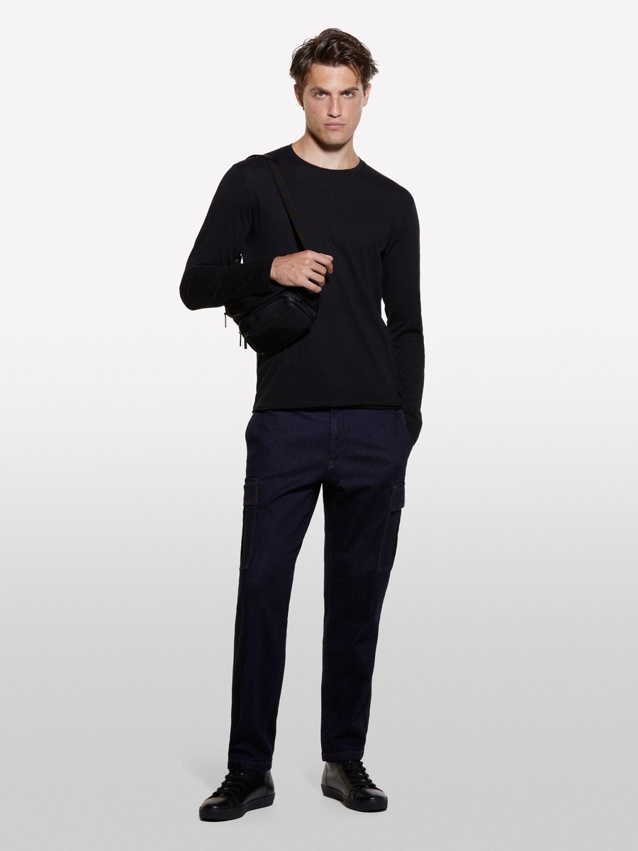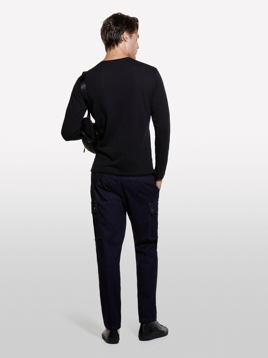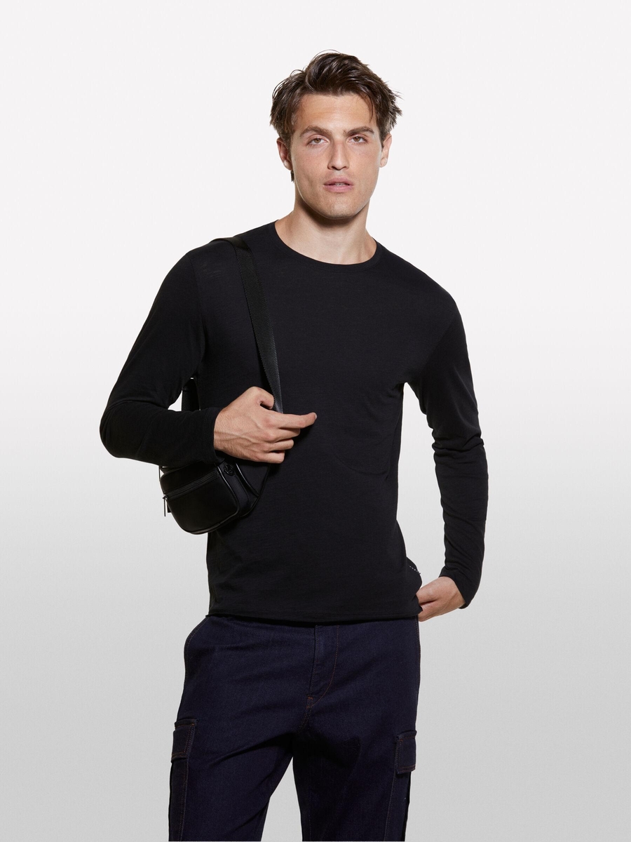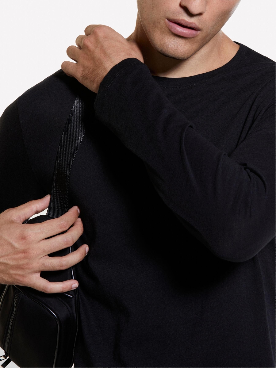 %100 Pamuk Dar Kesim Bisiklet Yaka Uzun Kollu T-Shirt Erkek Siyah T-Shirt - 324A3WF0S1013