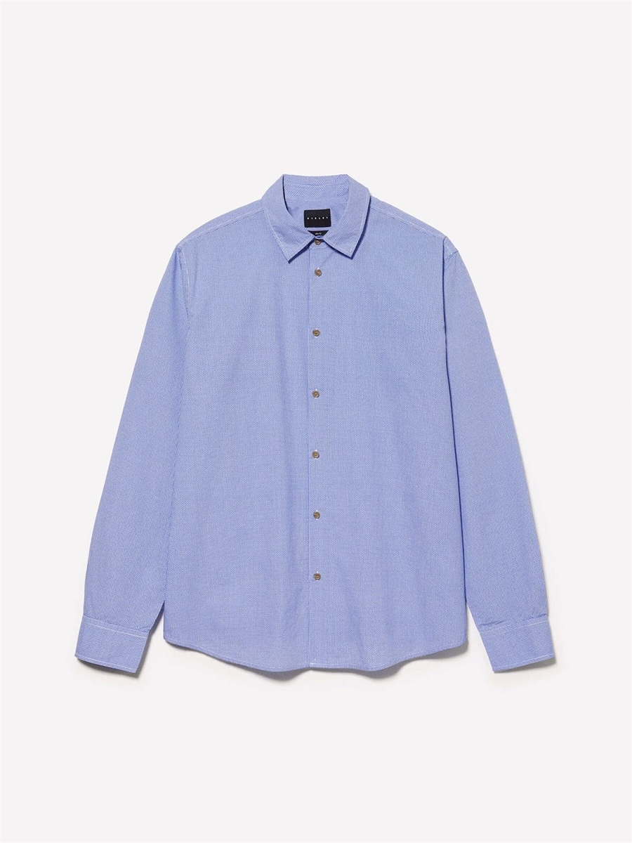 %100 Pamuk Dar Kesim Klasik Yakalı Baskılı Gömlek Erkek Buz Mavisi Gömlek - 324A5WNKSQ03U