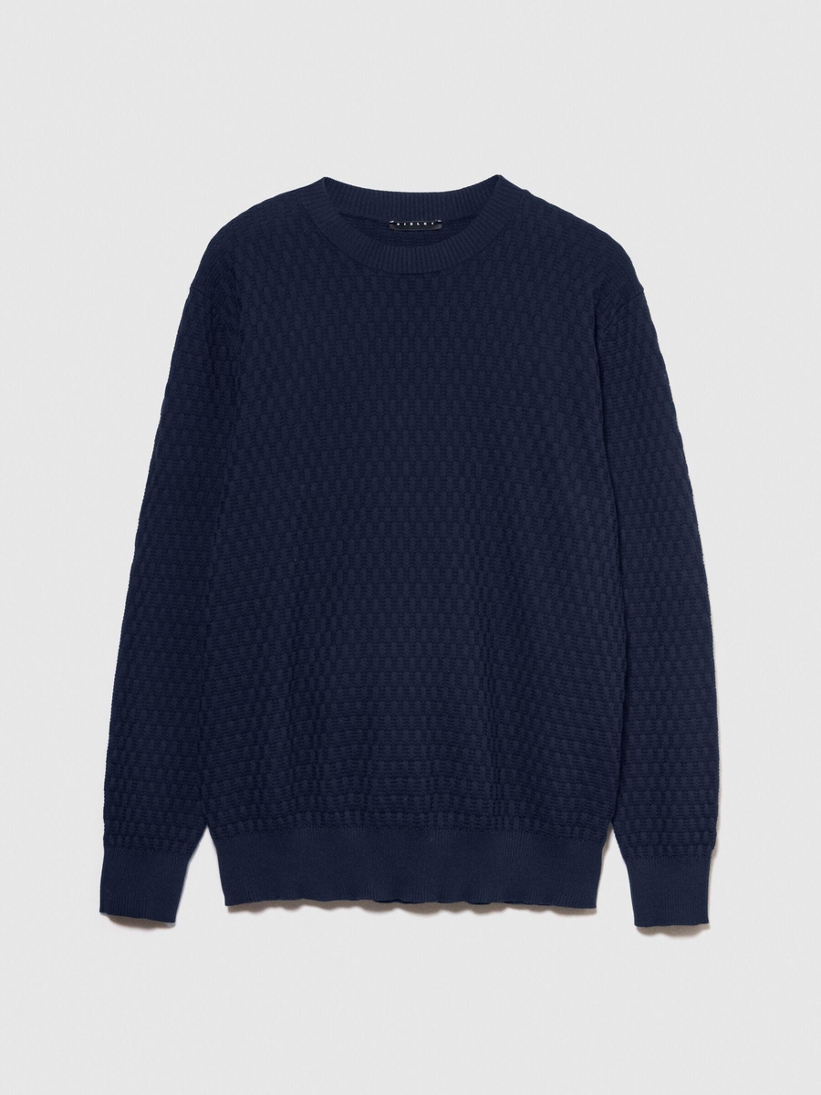 %100 Pamuk Dokulu Bisiklet Yaka Kazak Erkek Lacivert Kazak - 324P1098S1033