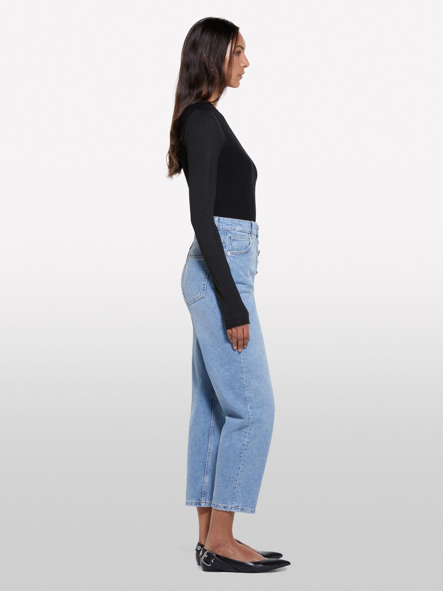 %100 Pamuk Düğme Detaylı Yüksel Bel Düz Paça Denim Pantolon Kadın Buz mavisi Denim Pantolon - 325P4I2MLE04G