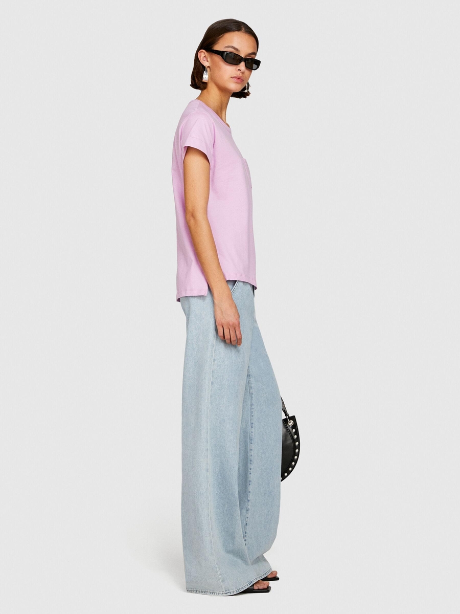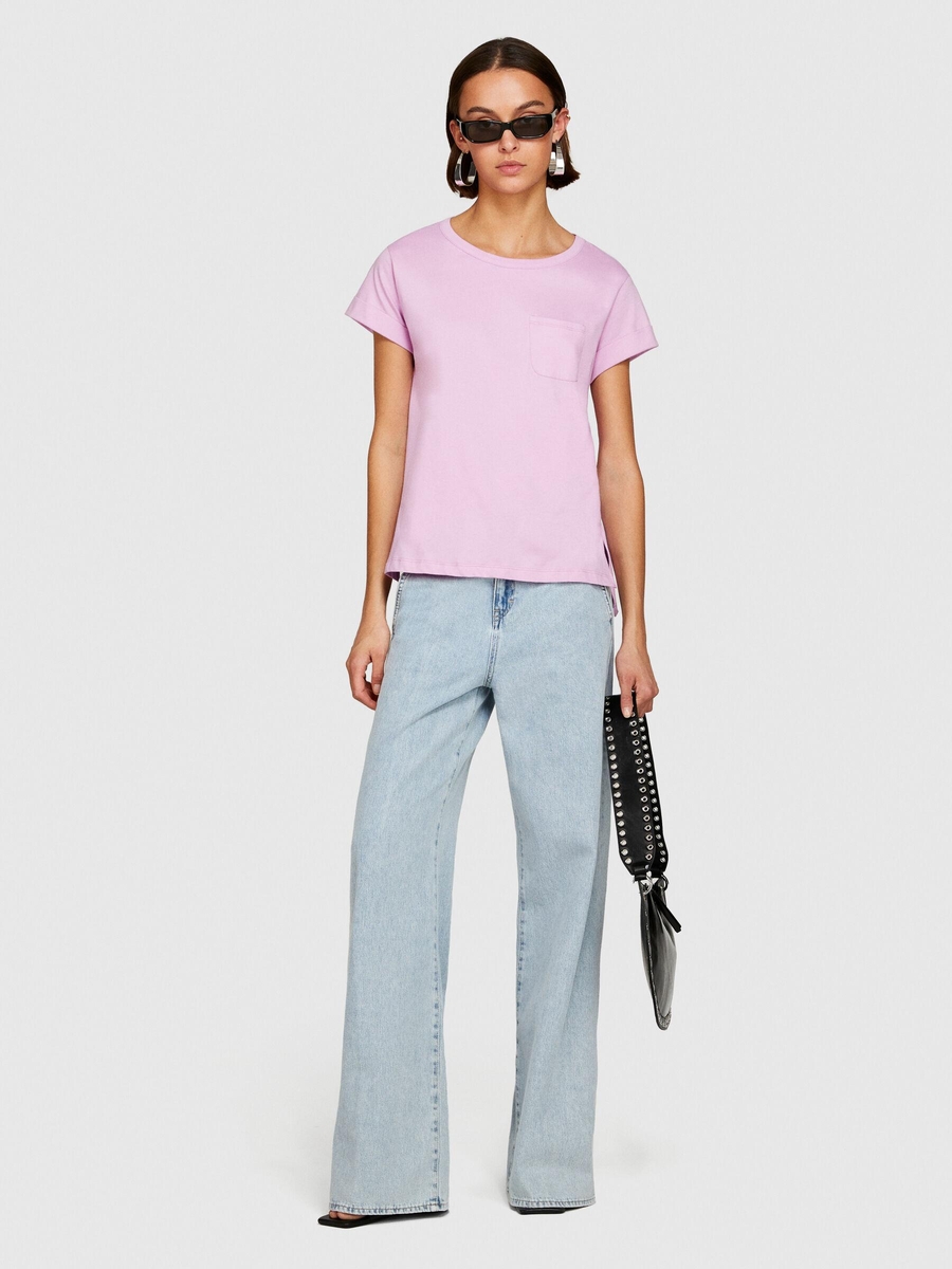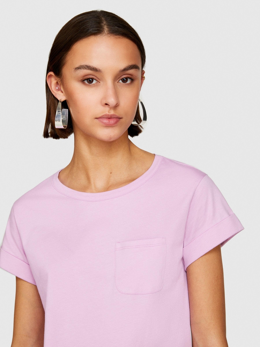 %100 Pamuk Geniş Bisiklet Yaka Dar Kesim Düz T-Shirt Kadın Sarı T-Shirt - 324P3I1XL1058
