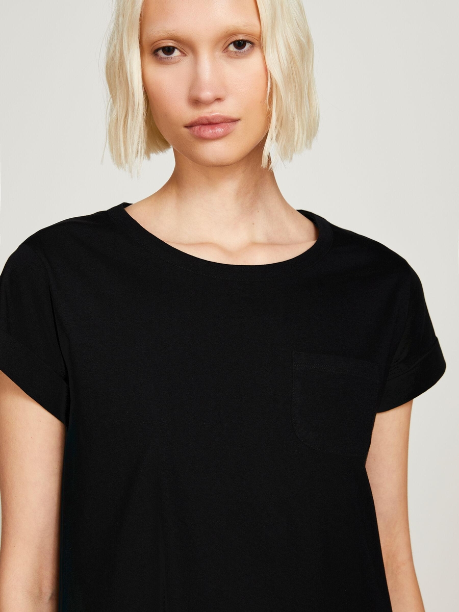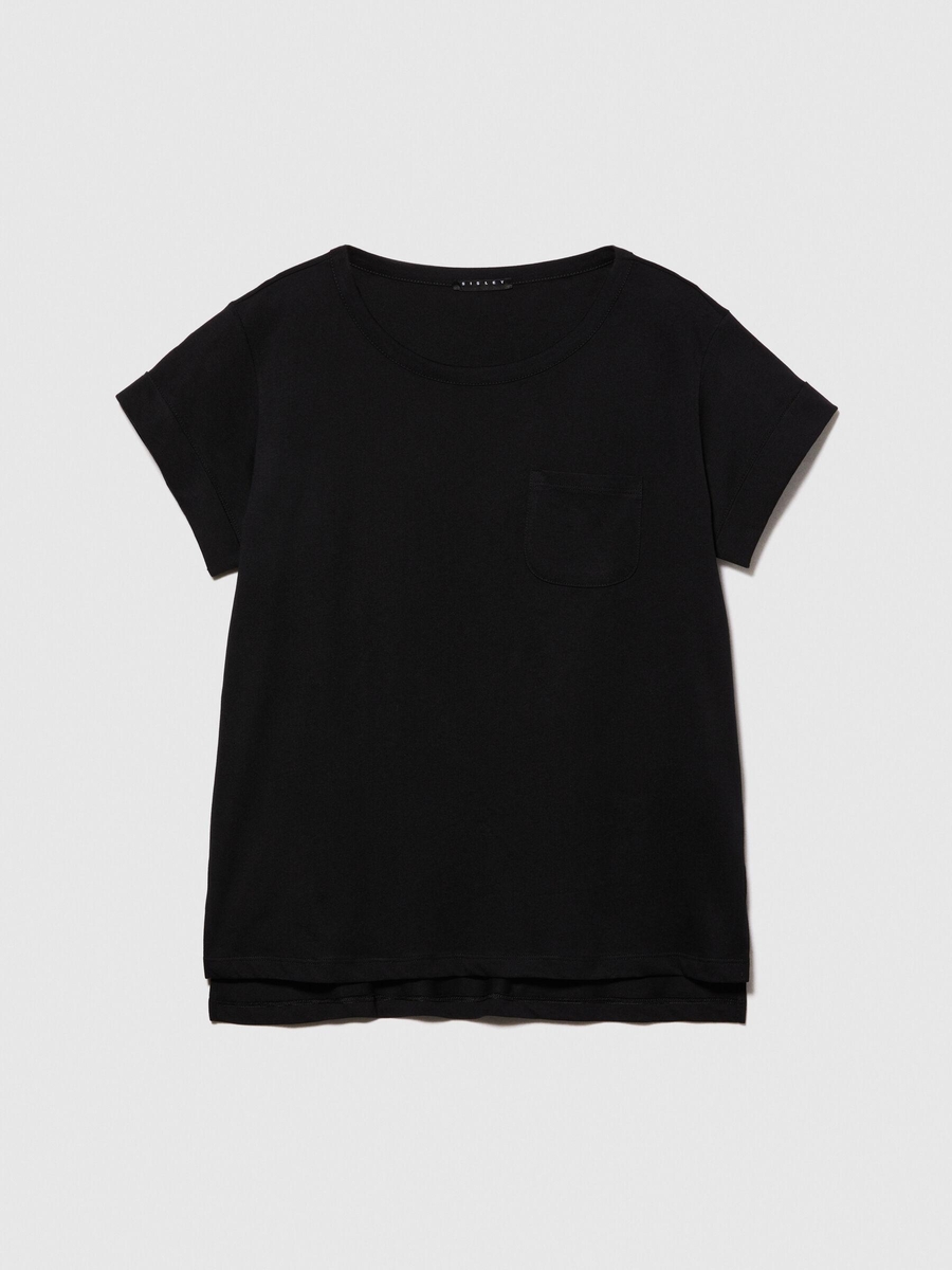 %100 Pamuk Geniş Bisiklet Yaka Dar Kesim Düz T-Shirt Kadın Siyah T-Shirt - 324P3I1XL1058