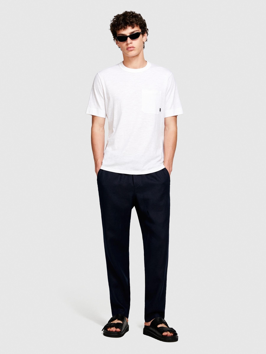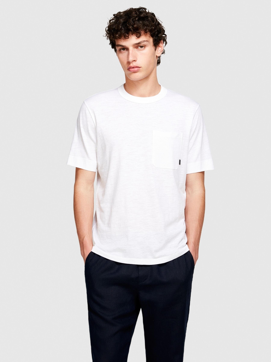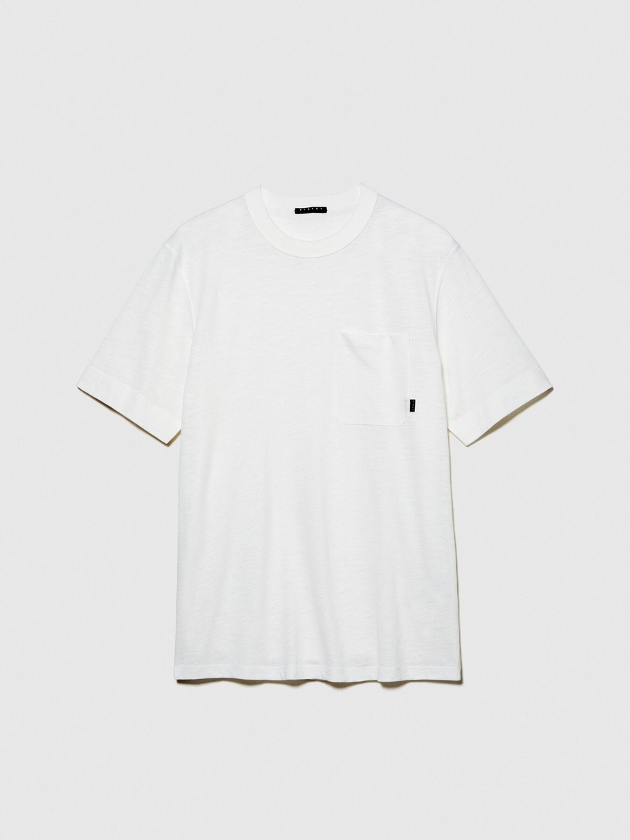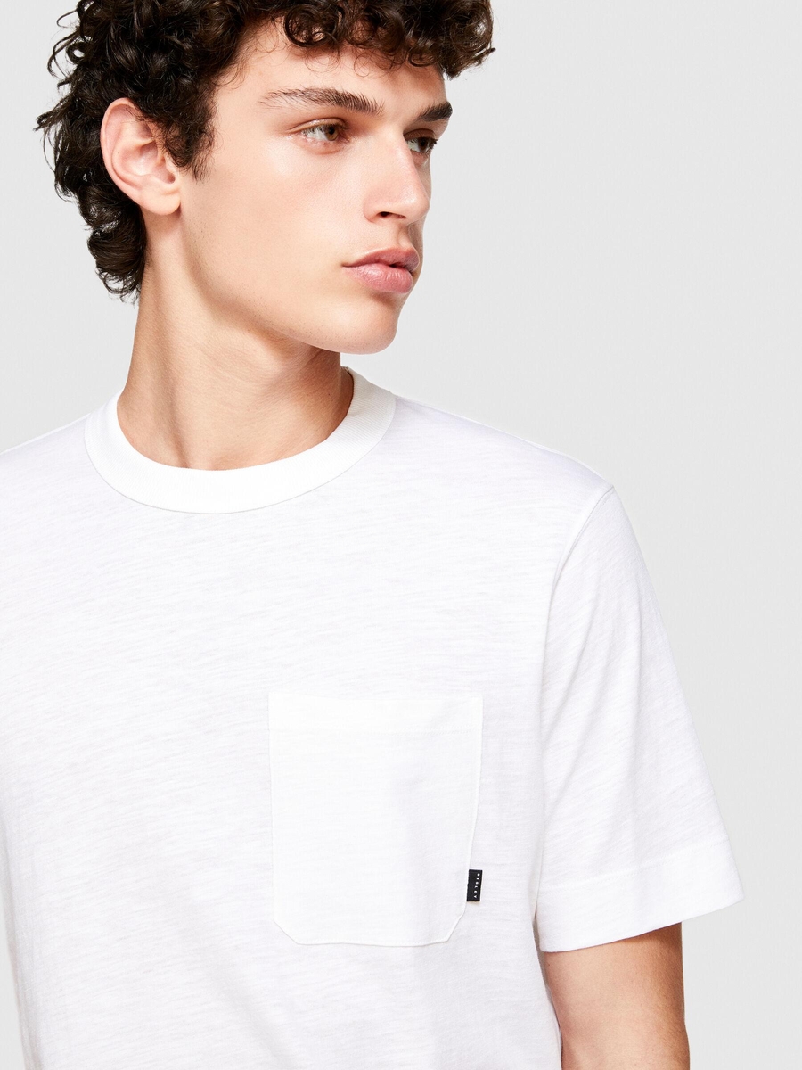 %100 Pamuk Göğsü Cepli Bisiklet Yaka Slub T-Shirt Erkek Beyaz T-Shirt - 324P3WF0S103L