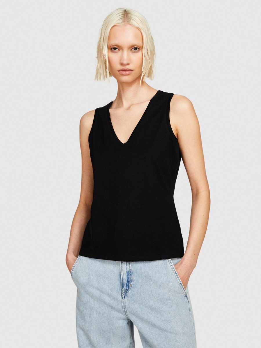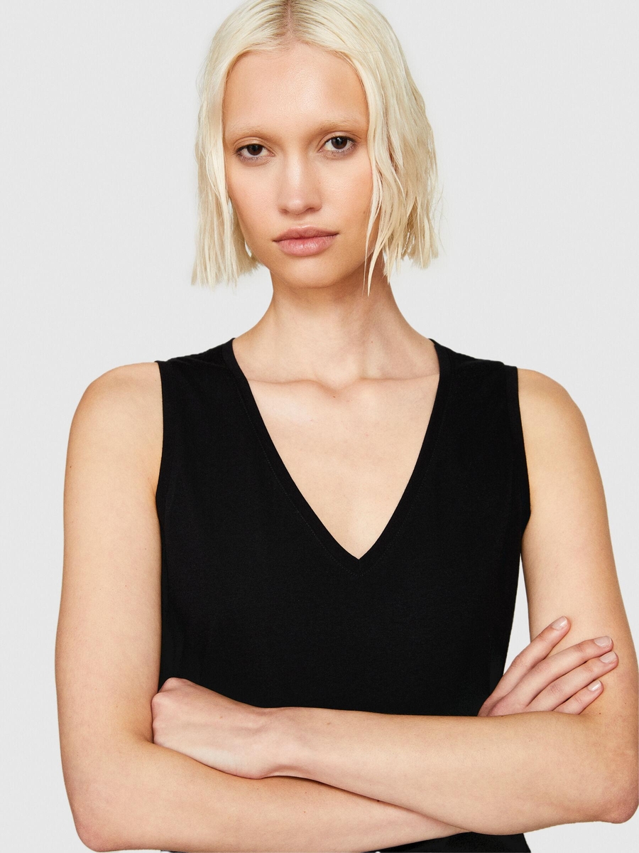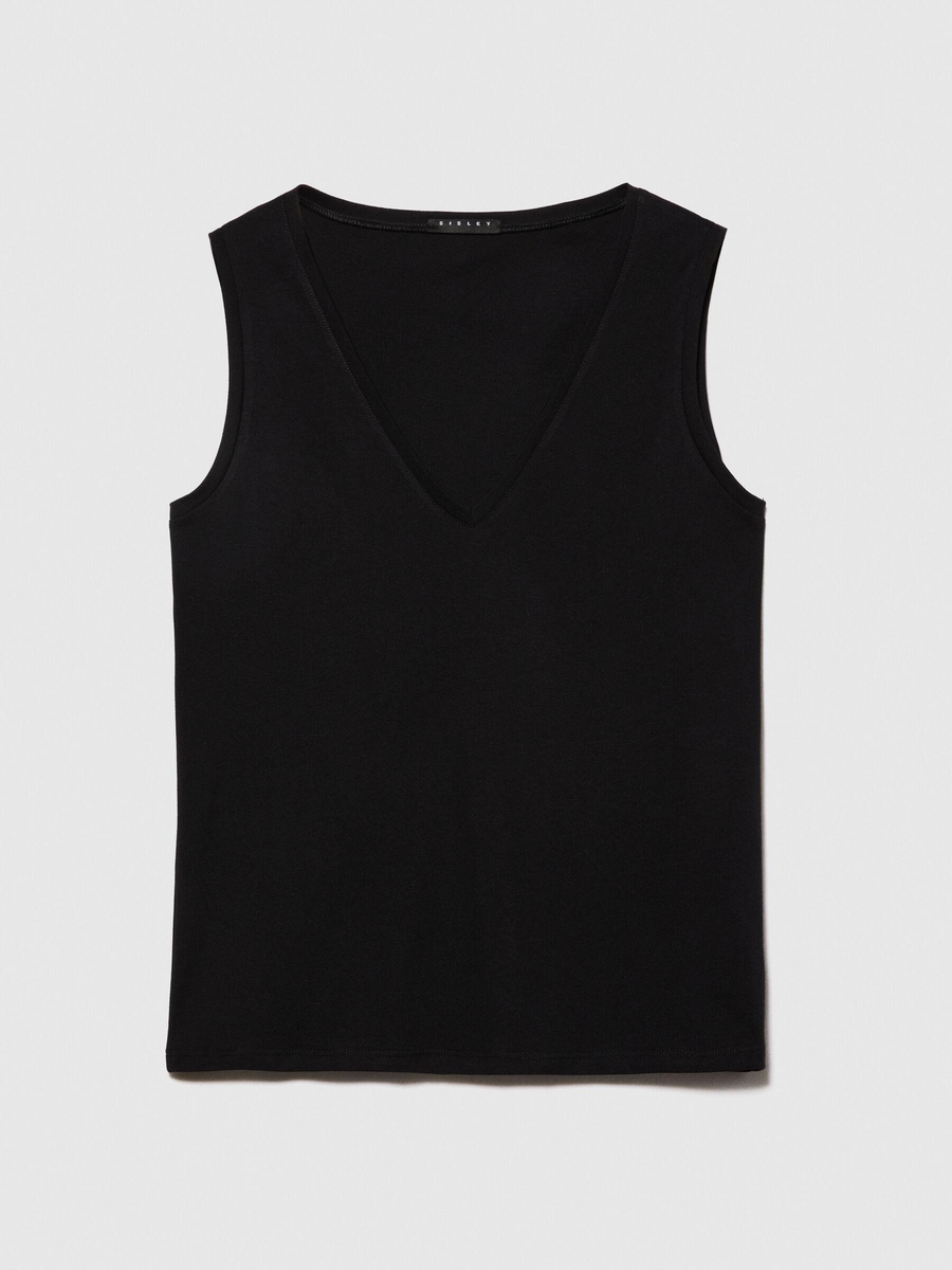 %100 Pamuk Kalın Askılı V Yaka Atlet Kadın Siyah Atlet - 324P3I1XLH00S