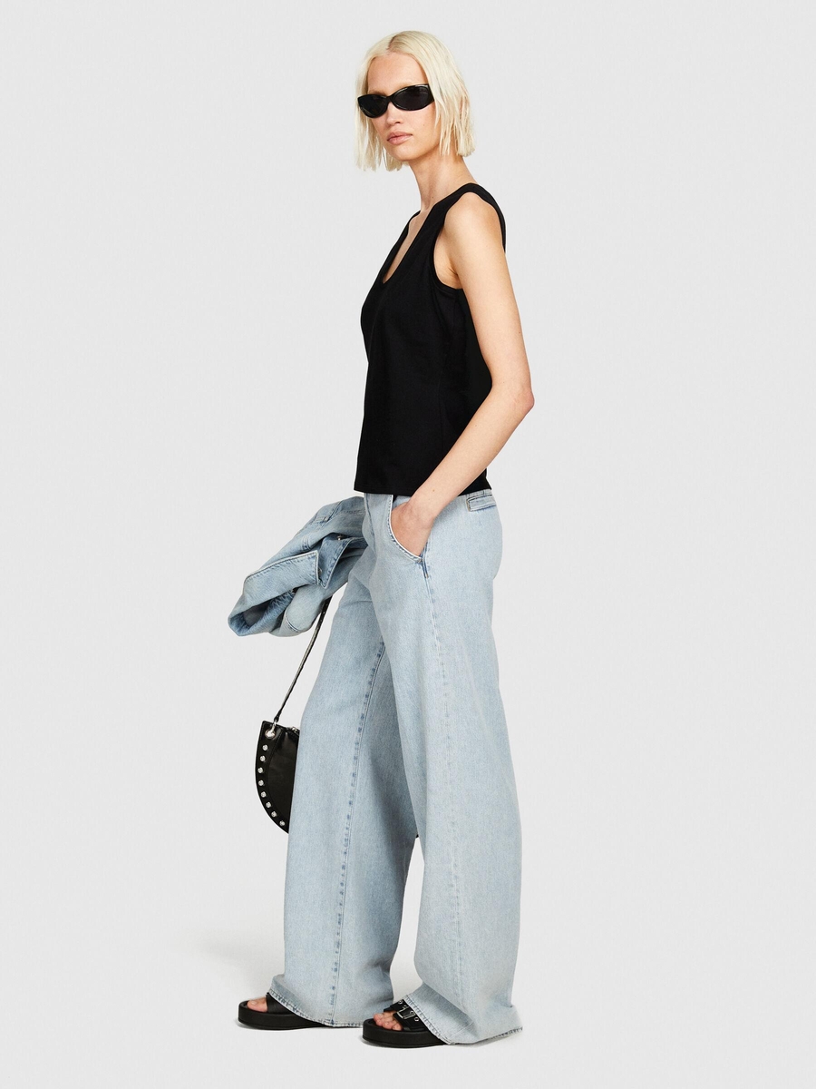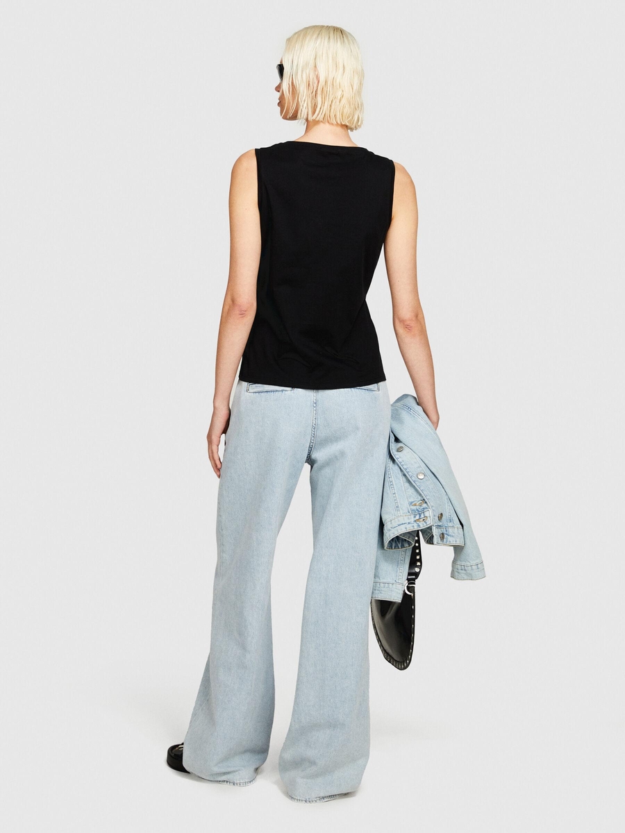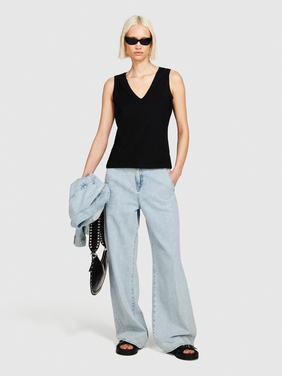 %100 Pamuk Kalın Askılı V Yaka Atlet Kadın Siyah Atlet - 324P3I1XLH00S