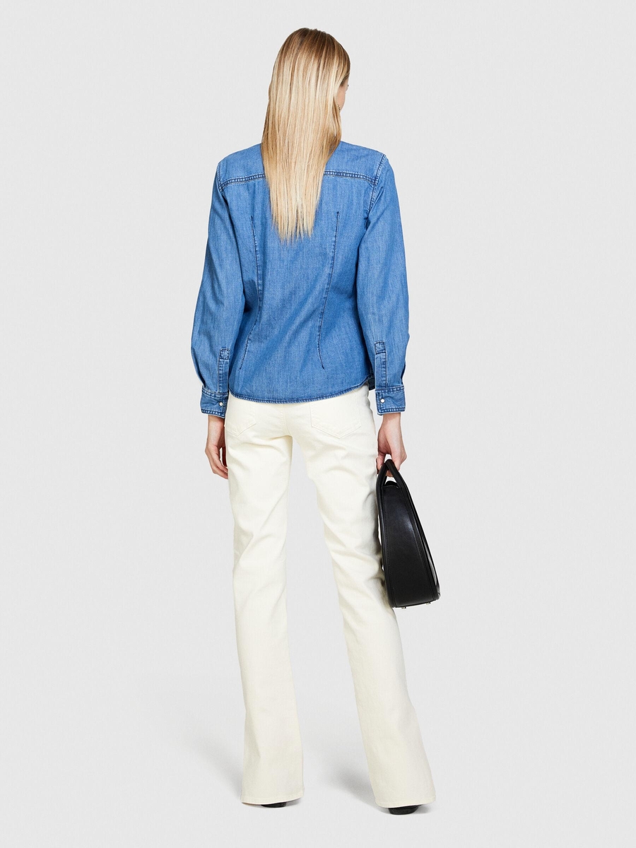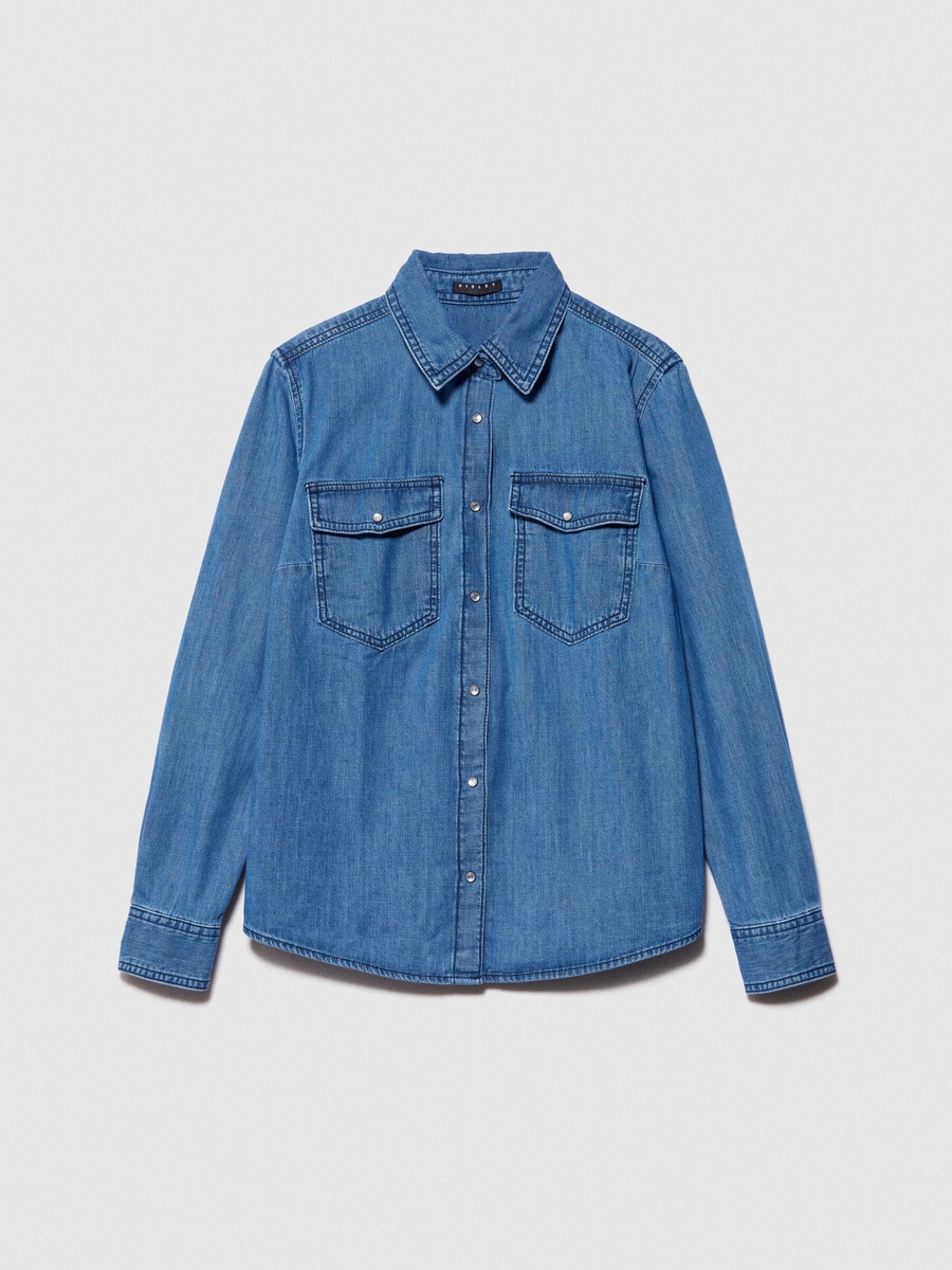 %100 Pamuk Kapaklı Cepli Denim Gömlek Kadın Siyah Mix Gömlek - 324P5FV6LQ028