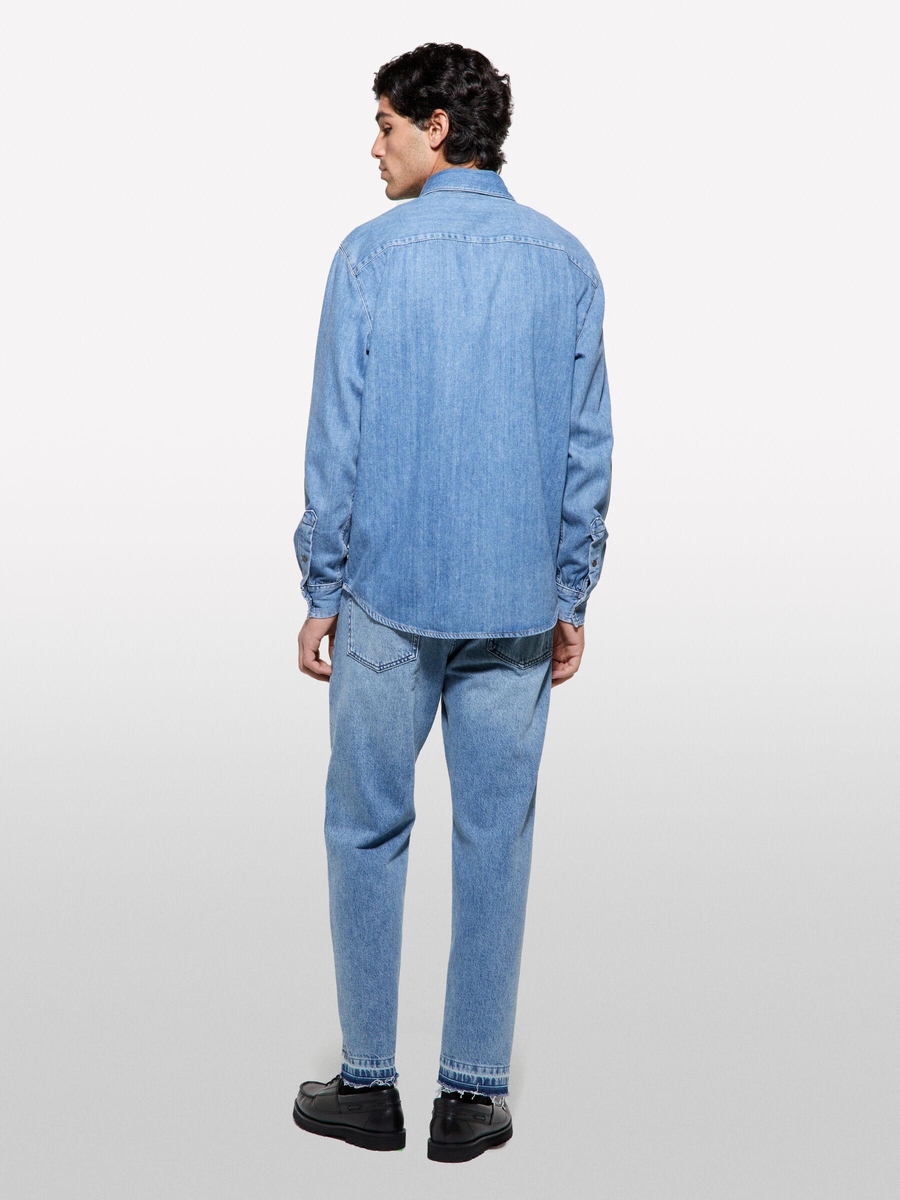 %100 Pamuk Önü 2 Cepli Regular Fit Denim Gömlek Erkek Mavi Denim Gömlek - 325P53GESQ04G