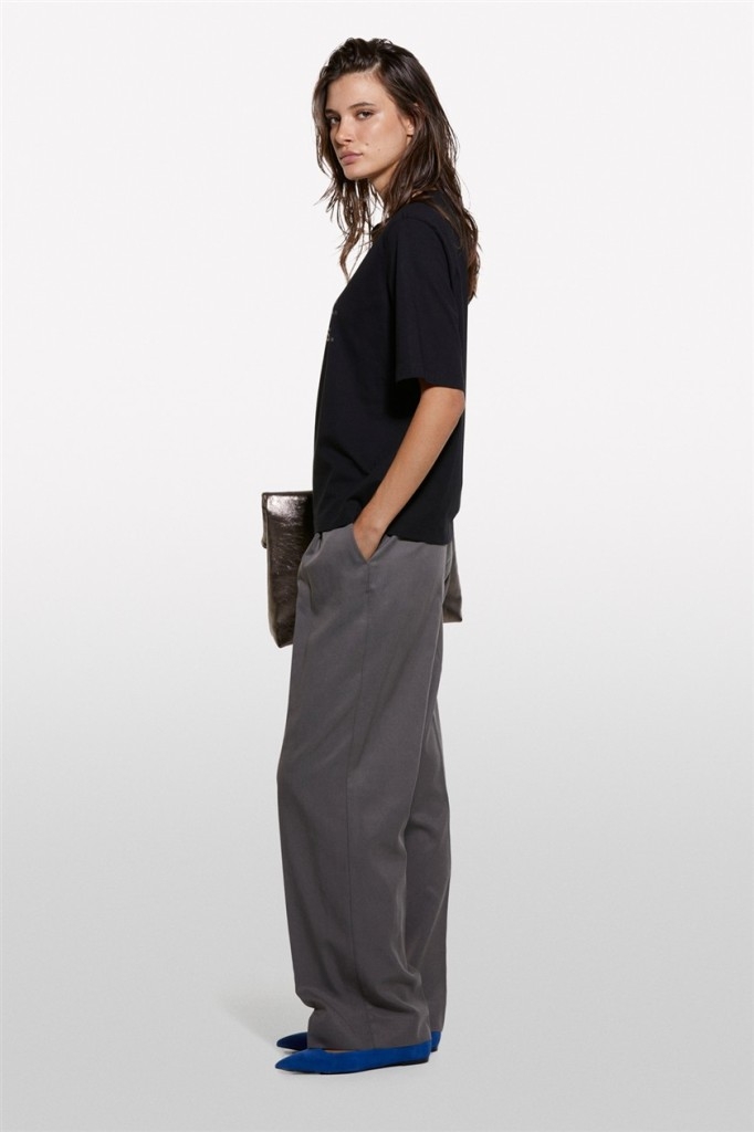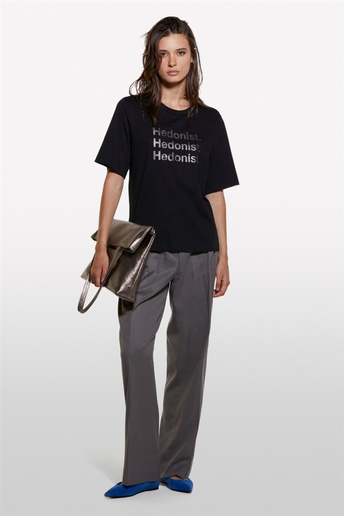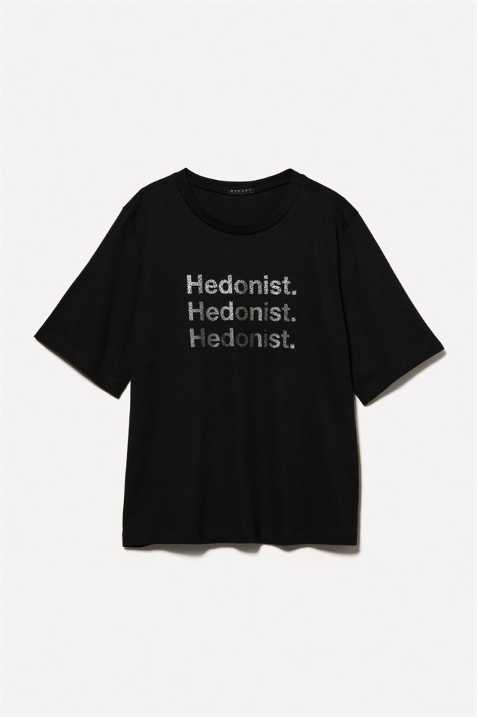 %100 Pamuk Önü Baskılı Kısa Kollu Bisiklet Yaka T-Shirt Kadın Siyah Baskılı T-Shirt - 324A3I1XL105P