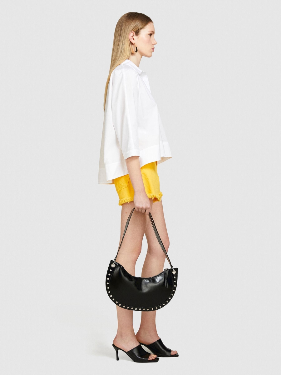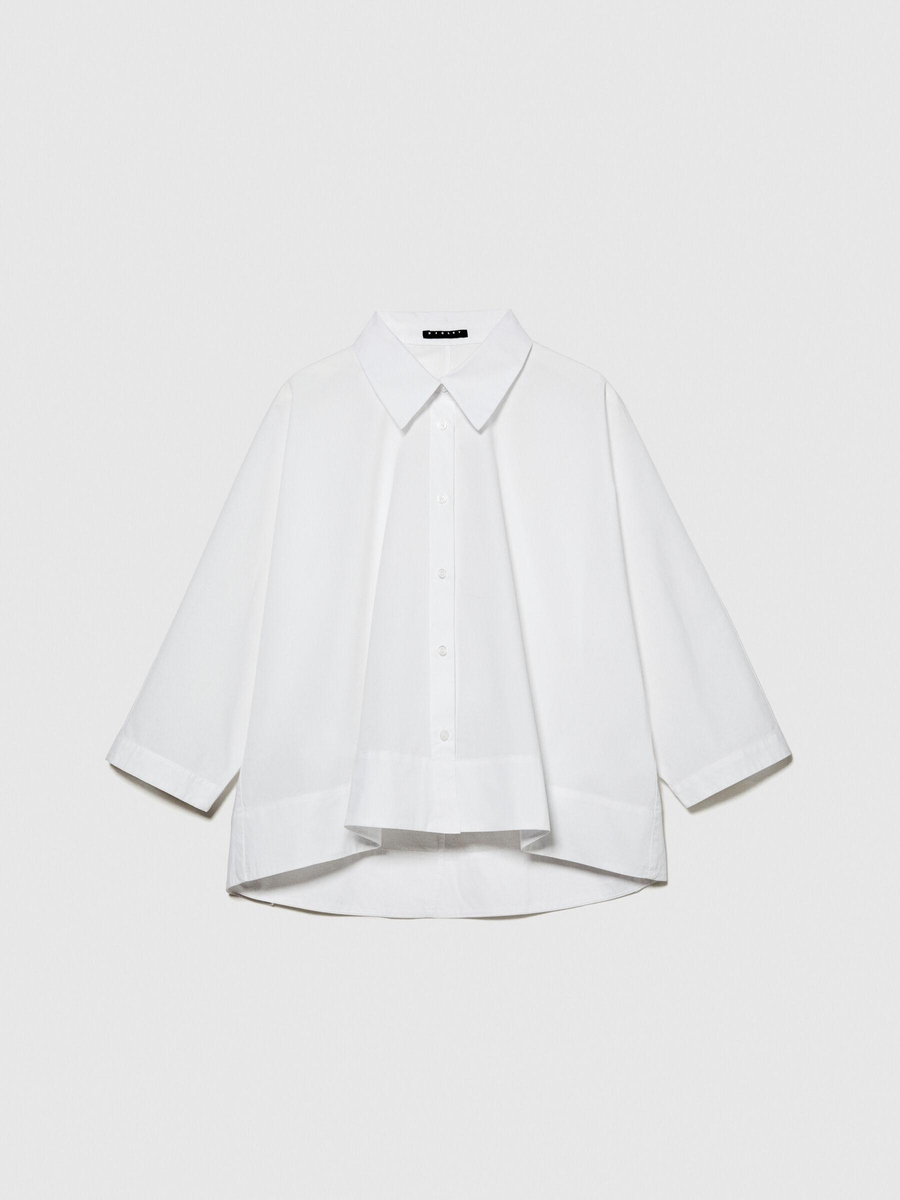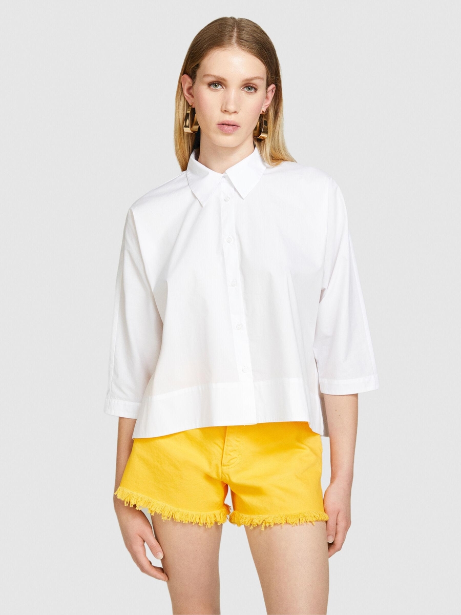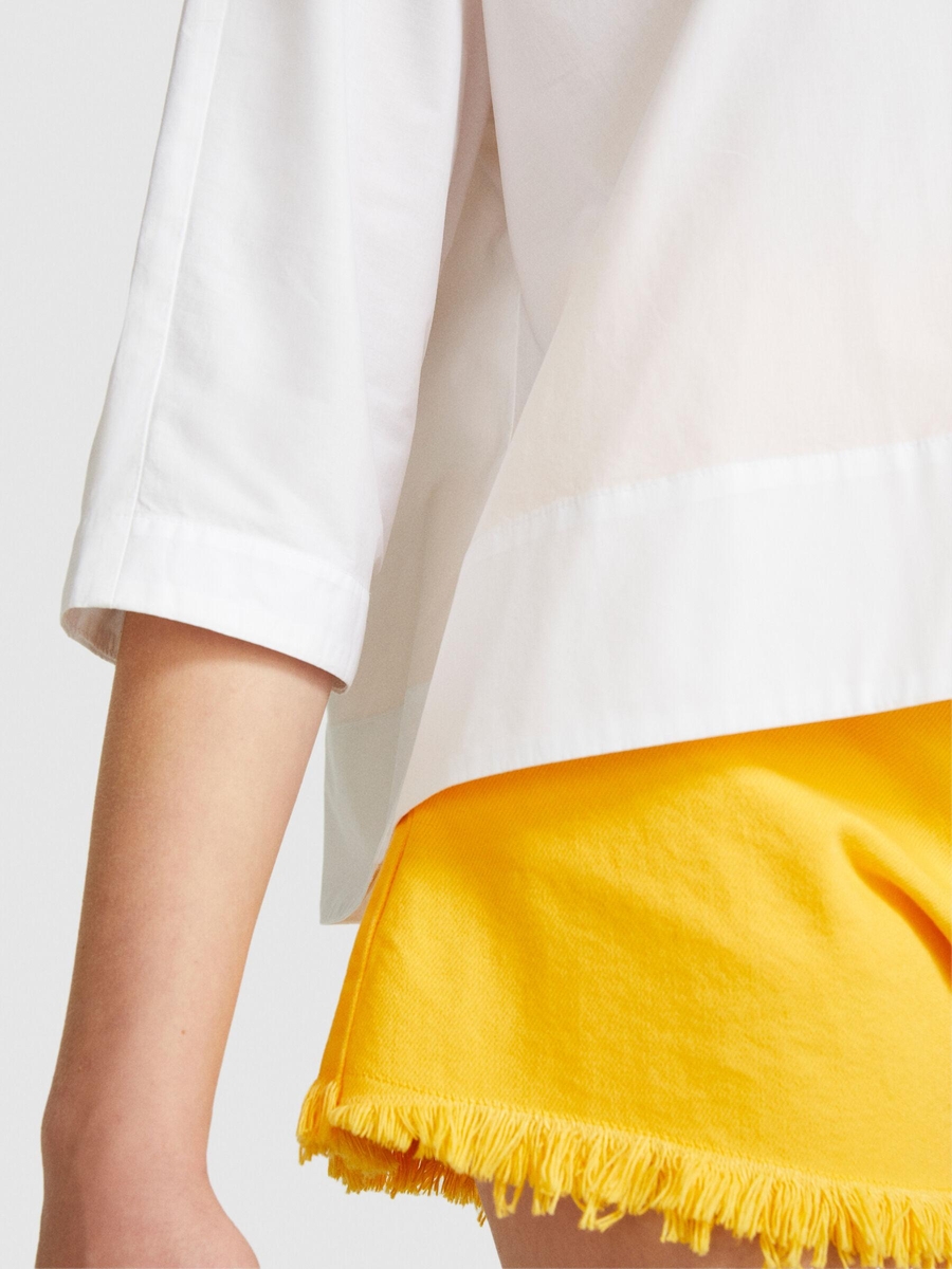 %100 Pamuk Önü Kısa A Kesim Gömlek Kadın Beyaz Gömlek - 324P5WMELQ06N