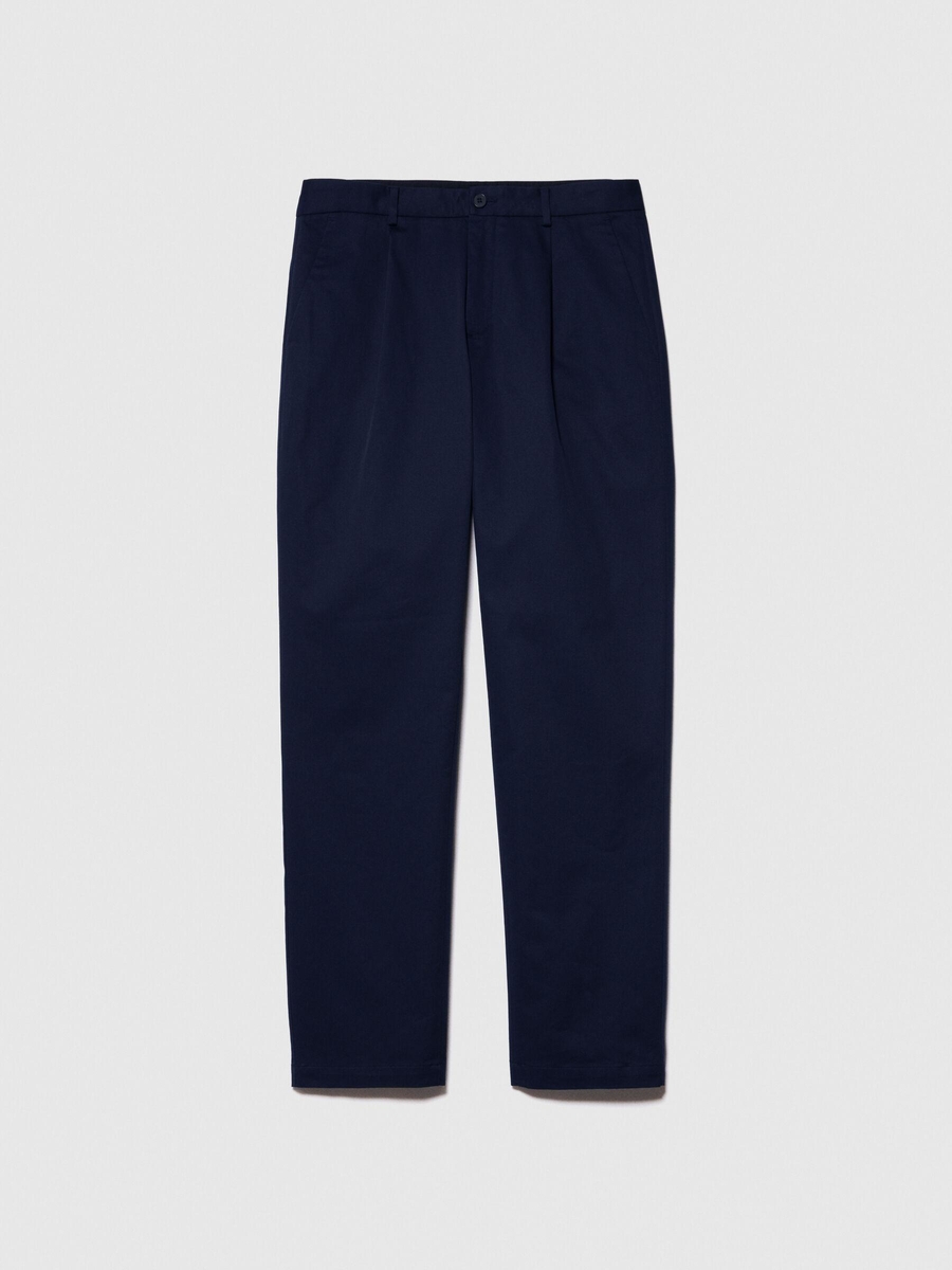 %100 Pamuk Önü Pileli Dar Paça Pantolon Erkek Lacivert Pantolon - 324P4FBHSF03U