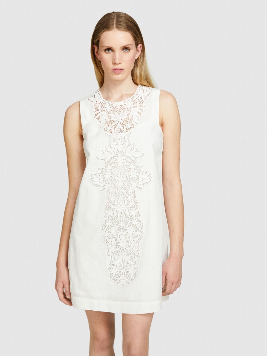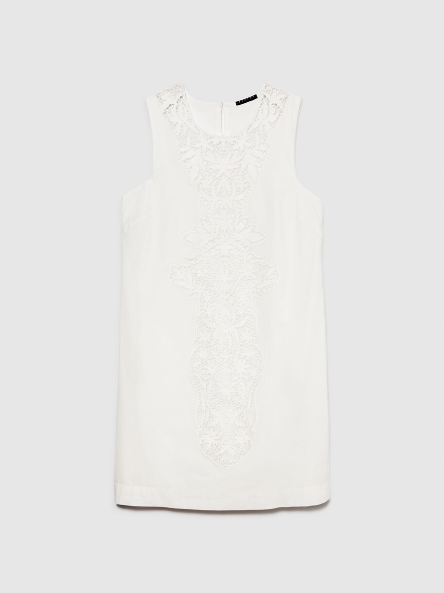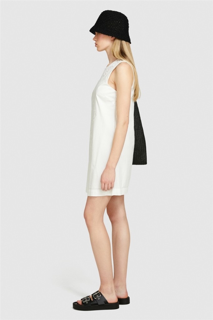 %100 Pamuk Önü Tıp İşlemeli Hafif Kloş Kolsuz Elbise Kadın Kırık Beyaz Elbise - 324P4EHXLV05V