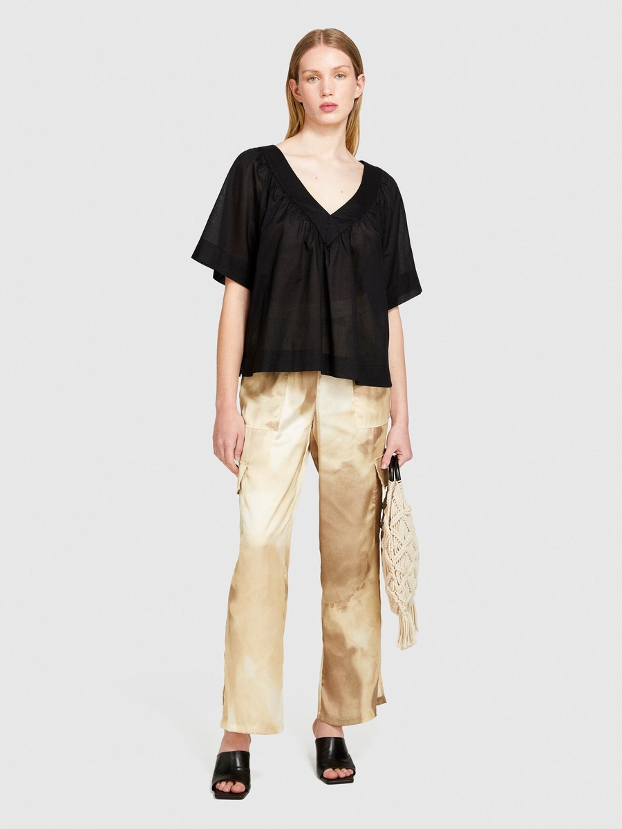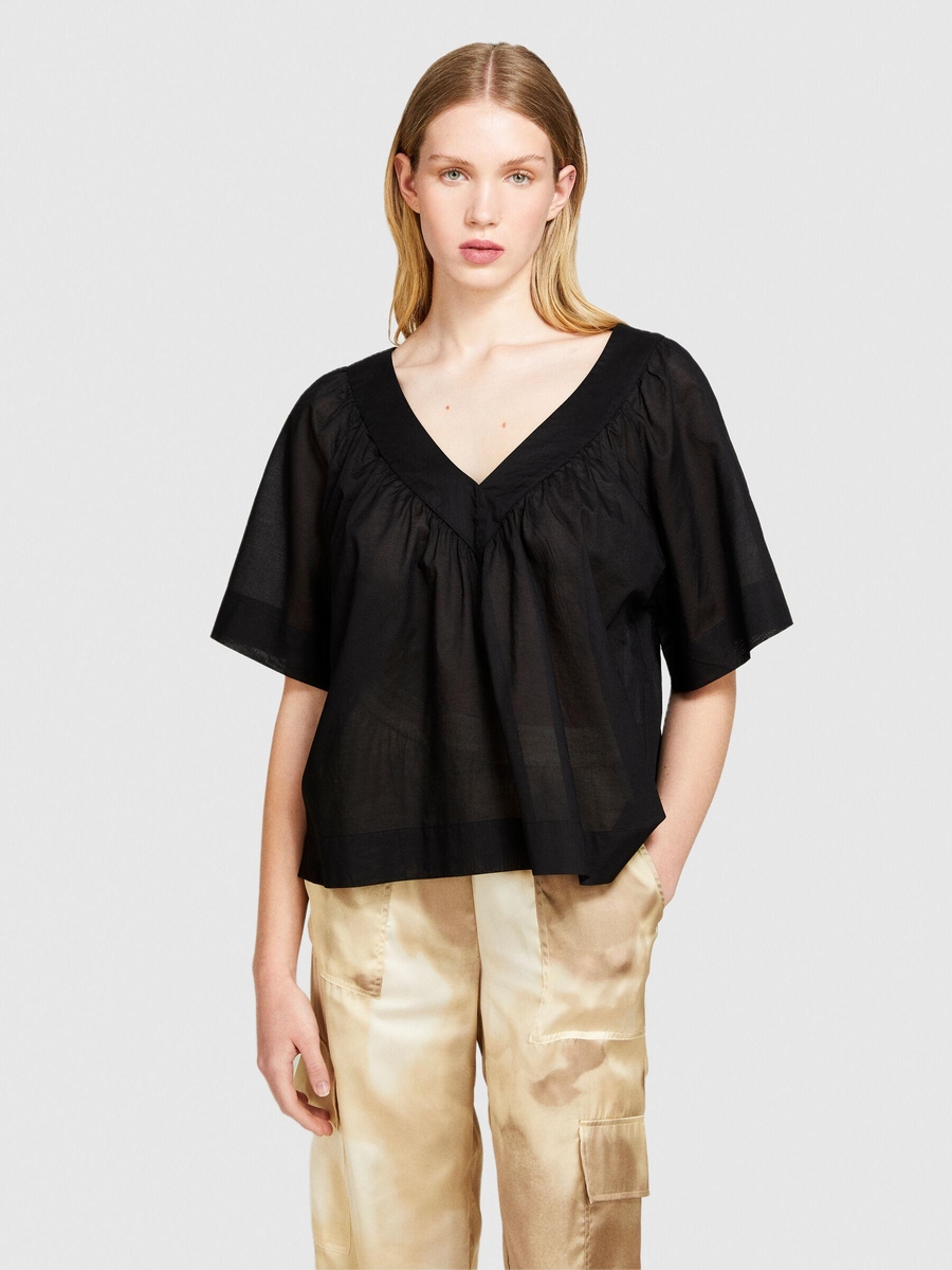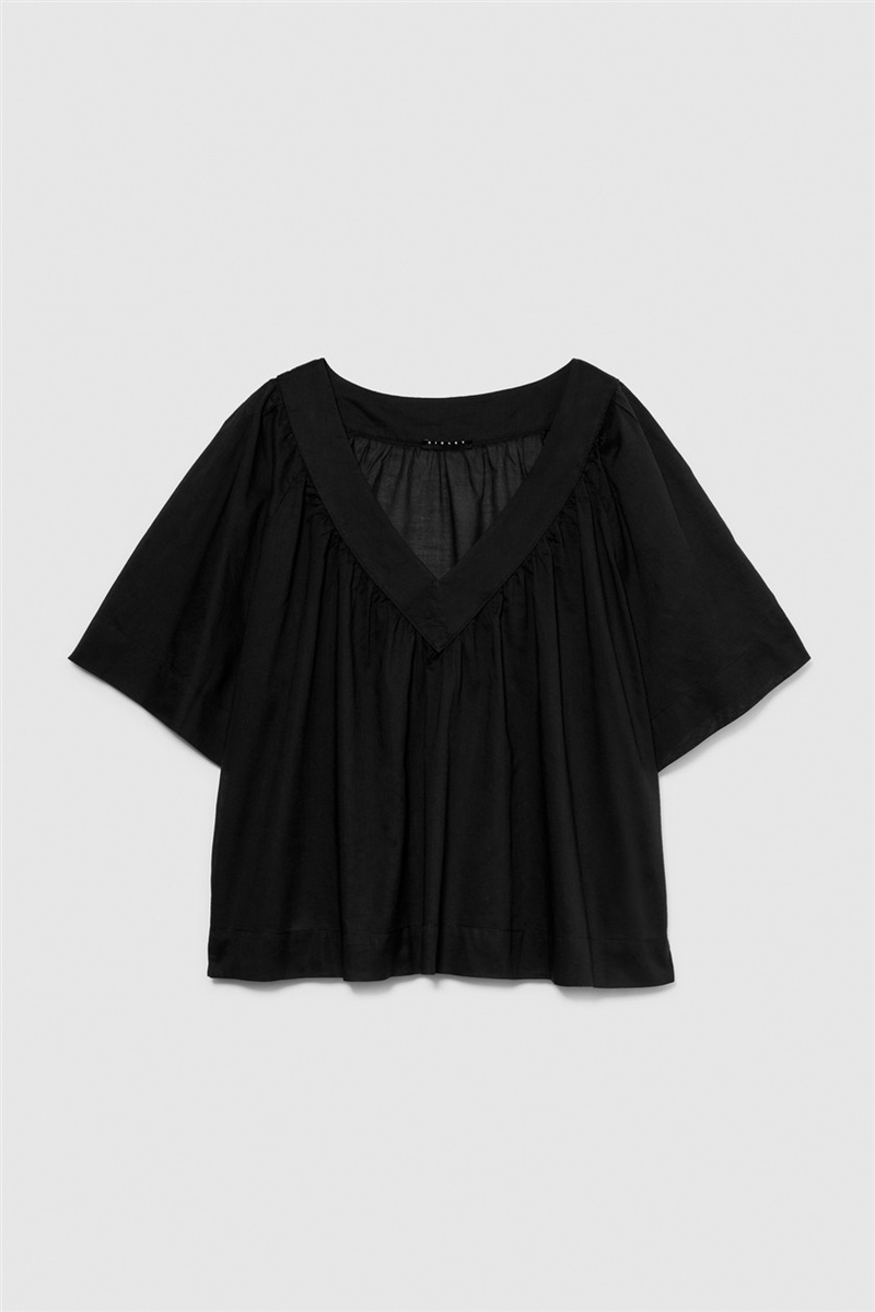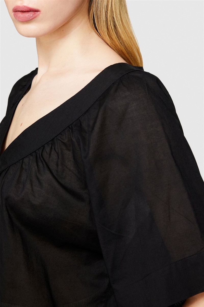 %100 Pamuk Pileli V Yaka Bluz Kadın Siyah Bluz - 324P5HO1LQ06Q